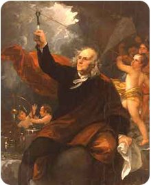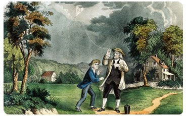 "เบนจามิน แฟรงกลิน" กับบุตรชาย ขณะทดลองพิสูจน์ไฟฟ้าในอากาศ