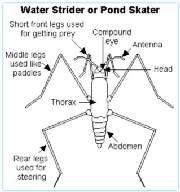 จิงโจ้ น้ำสามารถลอยอยู่บนผิวน้ำได้อย่างสบาย แถมเมื่อมันเคลื่อนที่โดยการกระโดดไกล เจ้าแมลงชนิดนี้ก็สามารถกลับมาทรงตัวอยู่บนผิวน้ำได้ราวกับว่าตัวของมันไม่ มีน้ำหนักเสียอย่างนั้น นั่นก็เป็นเพราะความสามารถของขาทั้ง 3 คู่ ที่สามารถรองรับน้ำหนักได้เป็นอย่างดี