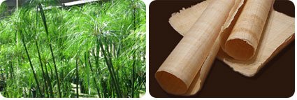 (ซ้าย) ต้นปาปิรุส และ (ขวา) กระดาษที่ได้จากต้นปาปิรุส