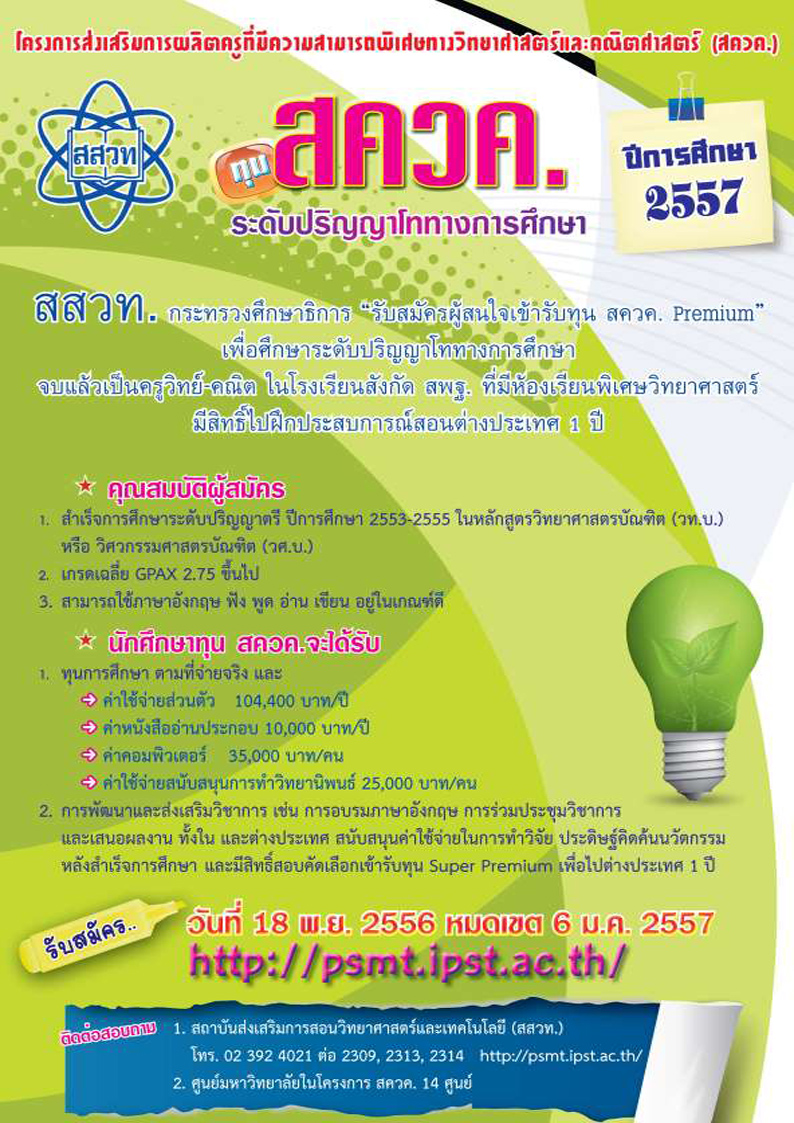 ทุน สควค. ระดับปริญญาโททางการศึกษา ปีการศึกษา 2557