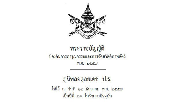 พ.ร.บ.คุ้มครองสัตว์ ฉบับแรกของประเทศไทย มีผลบังคับใช้แล้วตั้งแต่ 27 ธันวาคม 2557