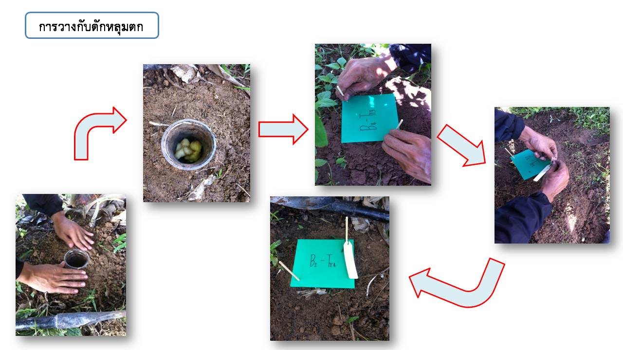 1. ขุดหลุมให้มีขนาดพอเหมาะกับถ้วยที่จะใช้ ใส่ถ้วยซ้อนกัน 2 ใบ ลงในหลุม กลบดินรอบถ้วยให้ดินเสมอกับปากถ้วย แล้วจึงดึงถ้วยที่ซ้อนอยู่ภายในออก