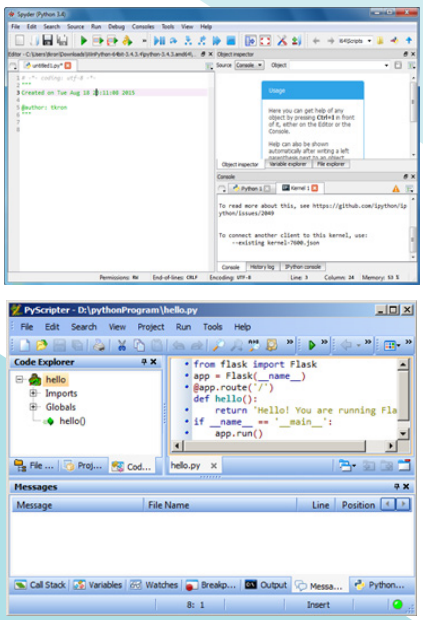 รูปที่ 2 หน้าต่าง Spyder ของไอดีอี่ WinPython และ หน้าต่าง PyScripter