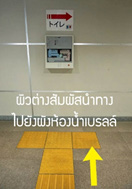 1. ผิวต่างสัมผัสนำทางไปยังห้องน้ำที่มีอักษรเบรลล์