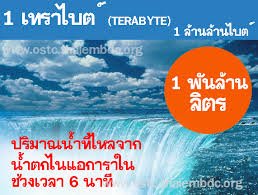 1 เทราไบต์ (Terabyte) ก็จะเทียบได้กับปริมาณน้ำ 1 พันล้านลิตร หรือ ปริมาณน้ำตกที่ไหลจากตกจากแม่น้ำไนแอการา (Niagara) ในช่วงเวลา 6 นาที