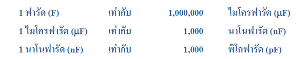 ส่วนค่าความจุทางไฟฟ้ามีหน่วยเป็นฟารัด(Farad)