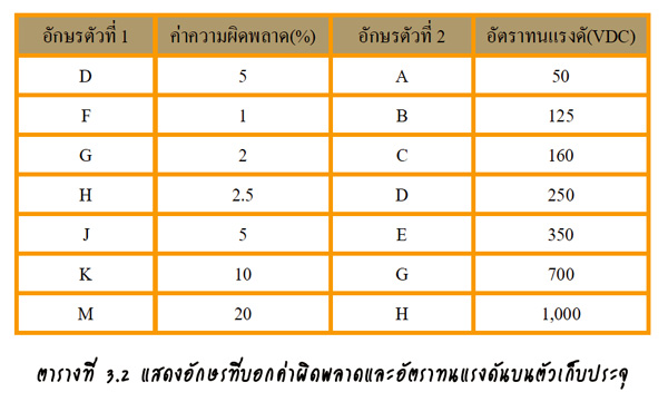 และอัตราทนแรงดันไว้บนตัวเป็นอักษรภาษาอังกฤษเอาไว้แต่ละตัวมีความหมายดัง