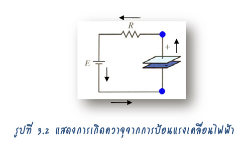จะทำให้เกิดค่าความจุทางไฟฟ้าขึ้น ลักษณะนี้เรียกว่าการเก็บประจุ (Charge)