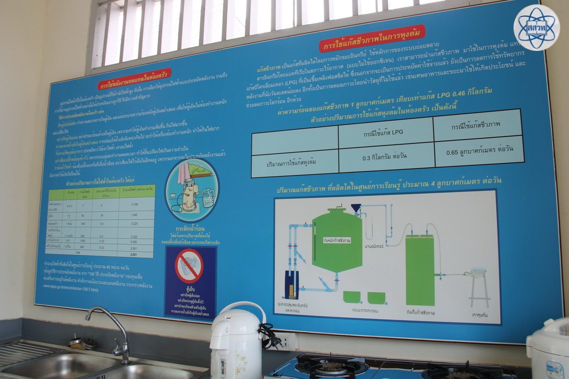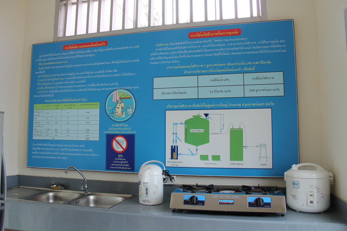 5. อาคารบ้านตัวอย่างได้รับการออกแบบให้มีเตาแก๊สที่ใช้ก๊าซชีวภาพเพื่อการประกอบอาหารในครัวเรือน