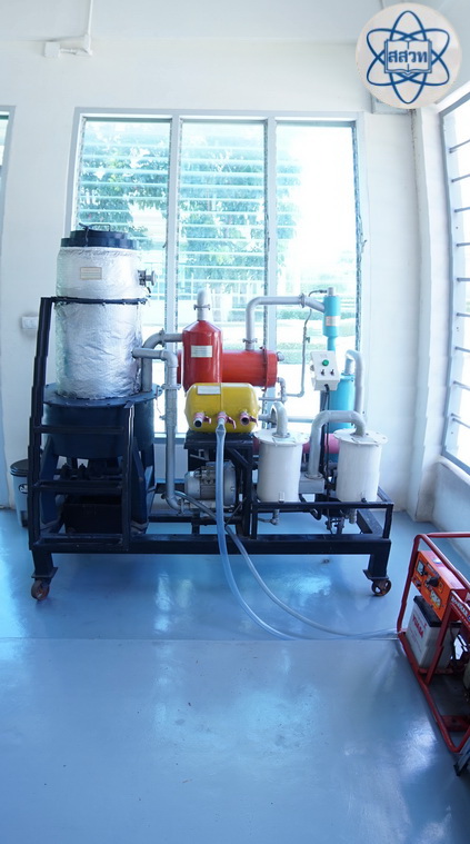 1) เริ่มจากการเตรียมวัตถุดิบ น้ำมันสัตว์หรือน้ำมันพืชใช้แล้วมาทำการกรองหยาบ เพื่อเอาเศษสิ่งปลอมปนขนาดใหญ่ออก