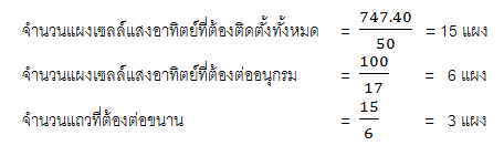 เมื่อ P คือ กำลังไฟฟ้าเซลล์แสงอาทิตย์ที่จะติดตั้ง