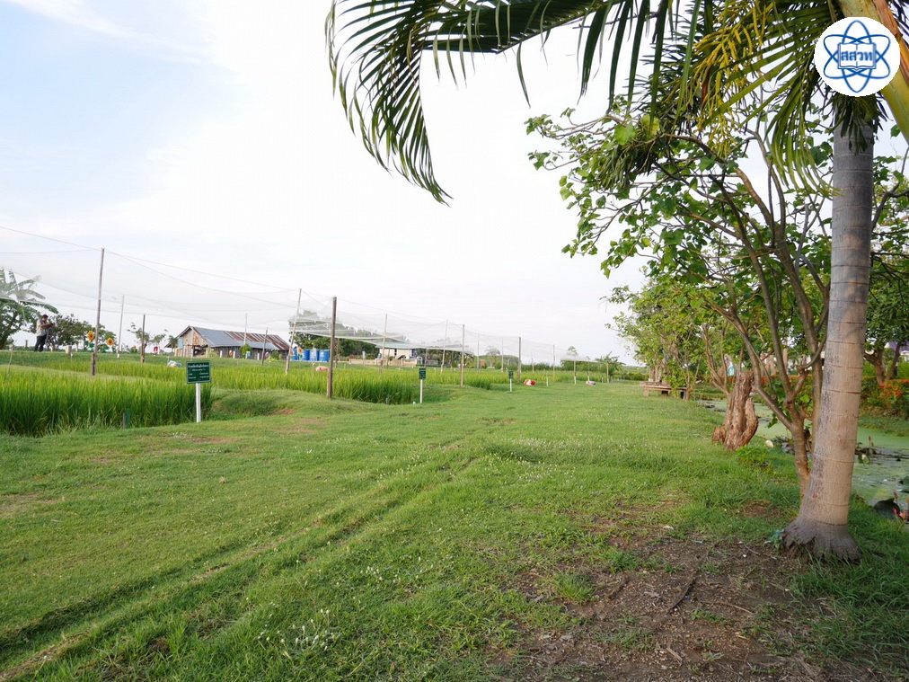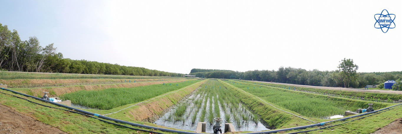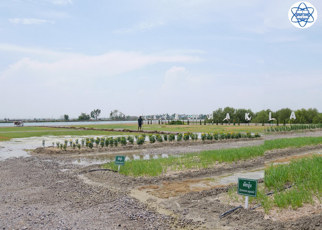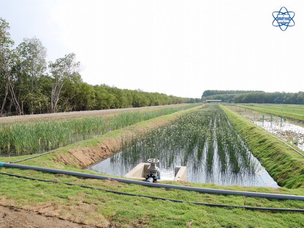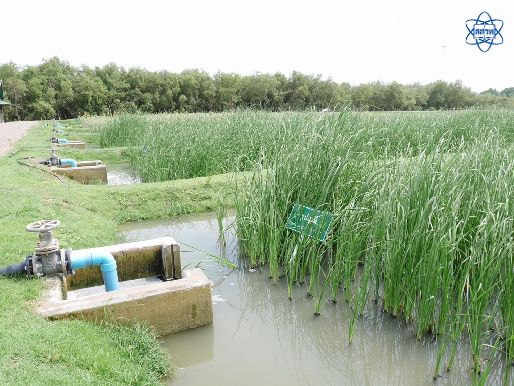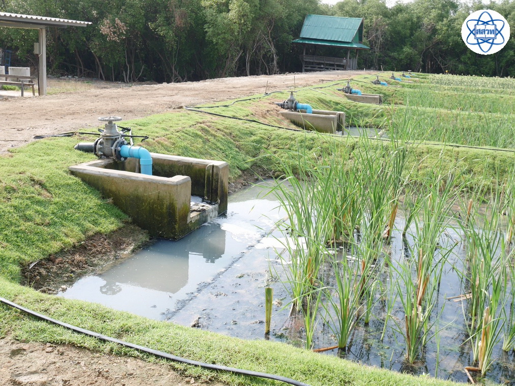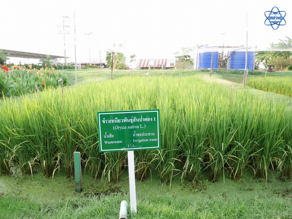 น้ำเสียที่เกิดจากชุมชนเป็นน้ำเสียที่ประกอบไปด้วยธาตุไนโตนเจน ฟอสฟอรัส และโพแทสเซียม ดังนั้นทางโครงการศึกษาวิจัยและพัฒนาสิ่งแวดล้อมแหลมผักเบี้ยอันเนื่องมาจากพระราชดำริ จึงได้มีการทดลองนำน้ำเสียจากชุมชนมาทำการปลูกข้าว โดยทางโครงการศึกษาวิจัยได้นำน้ำเสียจากชุมชนและน้ำจากระบบชลประทานในอัตราส่วน 50:50 มาใช้ในแปลงปลูกข้าว ซึ่งผลที่ได้พบว่าต้นข้าวมีการเจริญเติบโตได้ดียิ่งไปกว่านั้นผลผลิตที่ได้ยังสามารถนำไปใช้บริโภคได้ เนื่องจากน้ำเสียที่นำมาใช้นี้เป็นน้ำเสียจากชุมชนที่เมื่อถูกนำมาใช้และได้ทำการทดสอบค่าแล้วพบว่าสิ่งเจือปน ดังเช่น โลหะหนัก มีค่าไม่เกินค่าที่มาตรฐานกำหนด