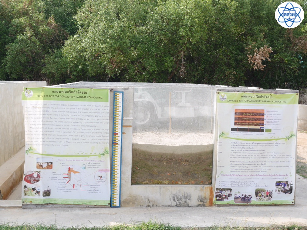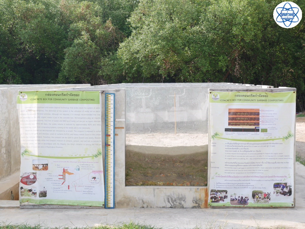 มูลนิธิชัยพัฒนา. (2543). การทำปุ๋ยหมักจากขยะโดยการฝังกลบในกล่องคอนกรีต. คู่มือเทคโนโลยีการบำบัดน้ำเสียตามแนวพระราชดำริ. (30 ตุลาคม).