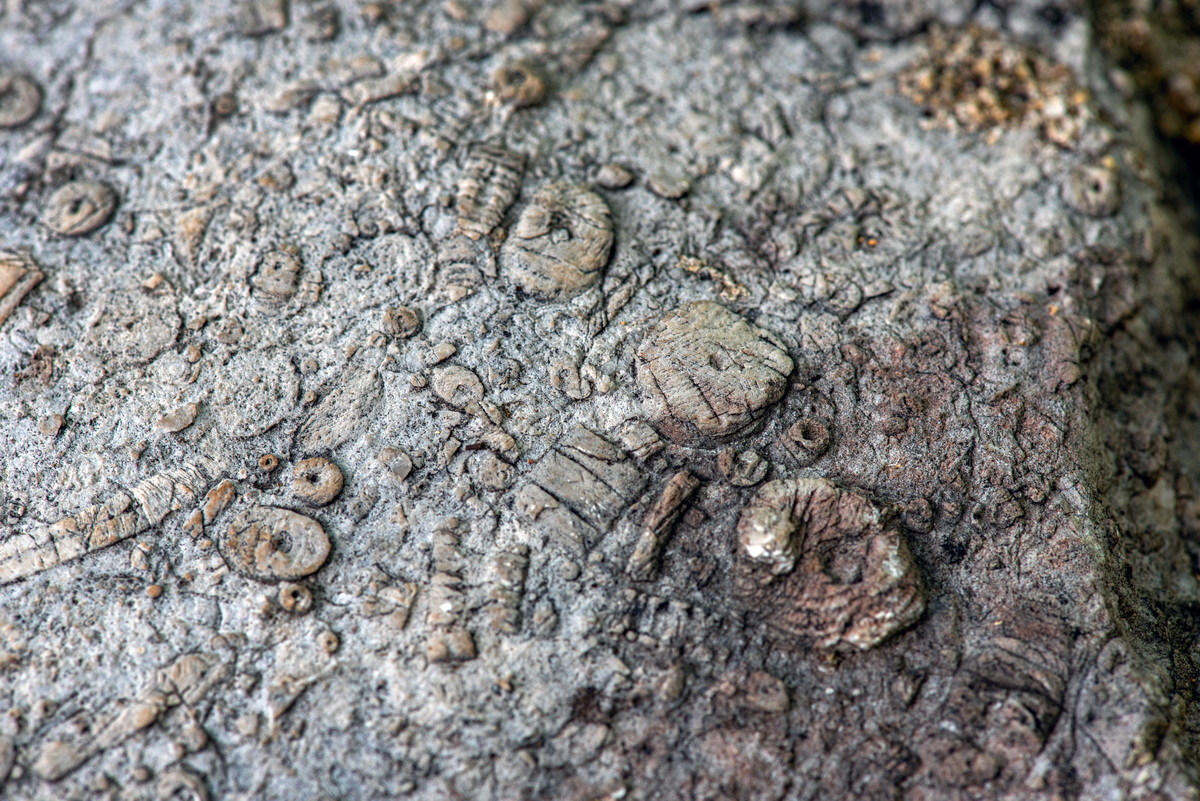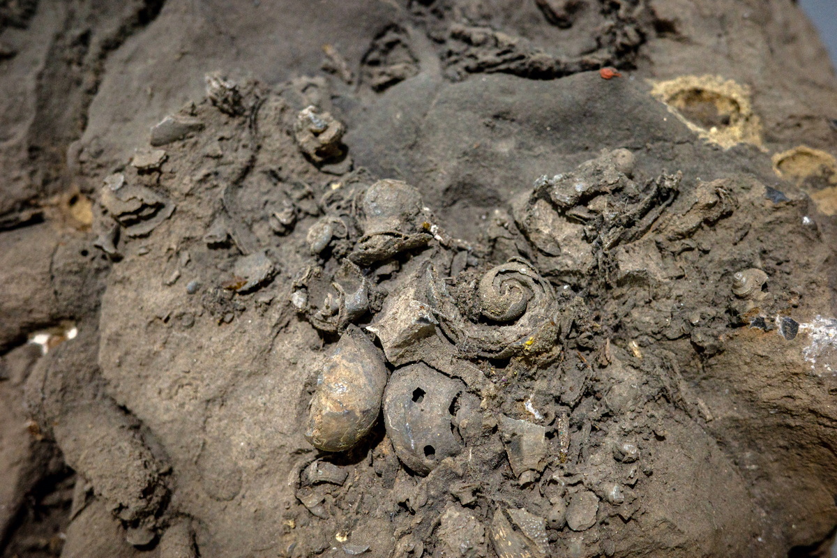 หอยแอมโมไนต์ เปลือกแบ่งเป็นห้องๆ คล้ายกับหอยนอติลุสในปัจจุบัน แต่หอยแอมโมไนต์จะมีผนังกั้นห้อง ซึ่งมักมีท่ออากาศอยู่ตรงกลางเปลือก โดยเปลือกมีหลายรูปแบบ เช่น ขดม้วนเป็นวงกลม ยืดออกไปตรงๆ หรือบิดไปบิดมาโค้งจนถึงหยักมาก ท่ออากาศช่วยในการลอยตัว การดำรงชีวิตของแอมโมไนต์จะเคลื่อนที่แบบเดียวกับหมึก