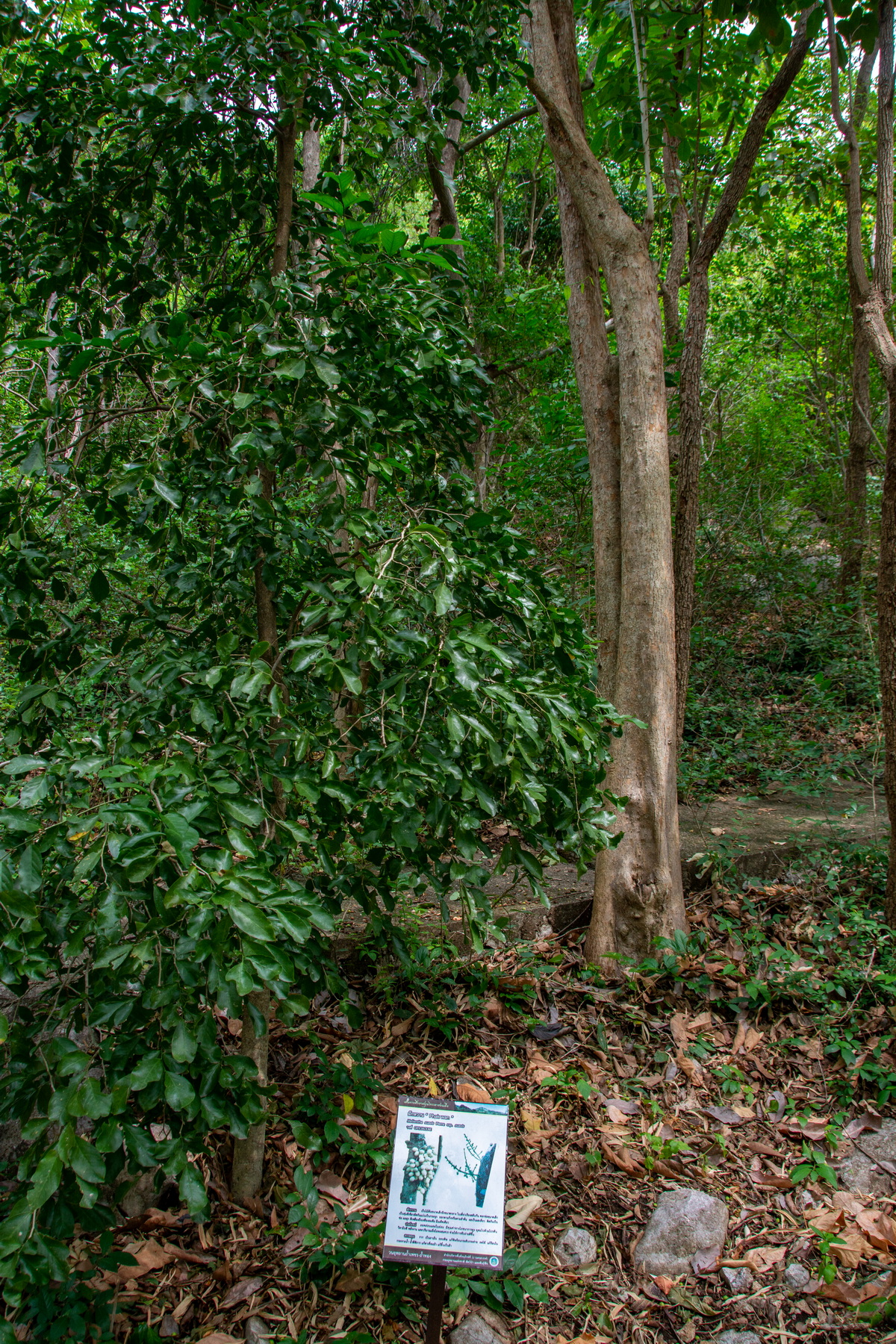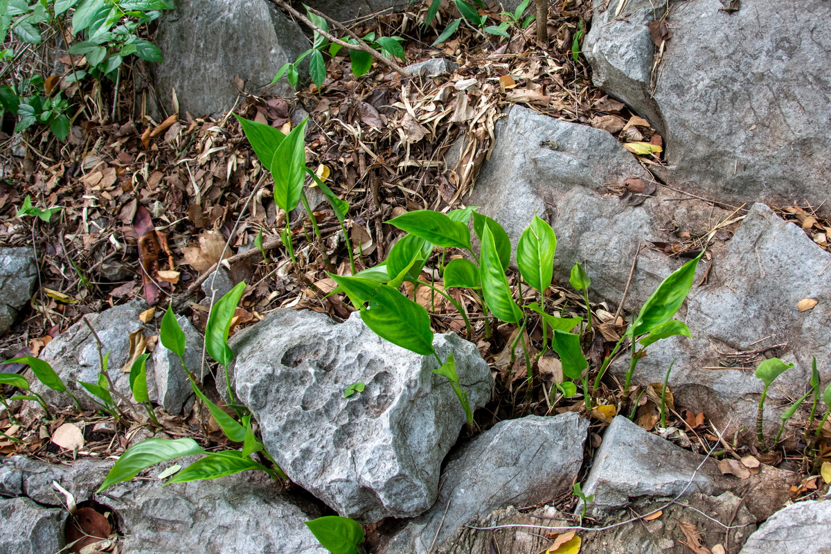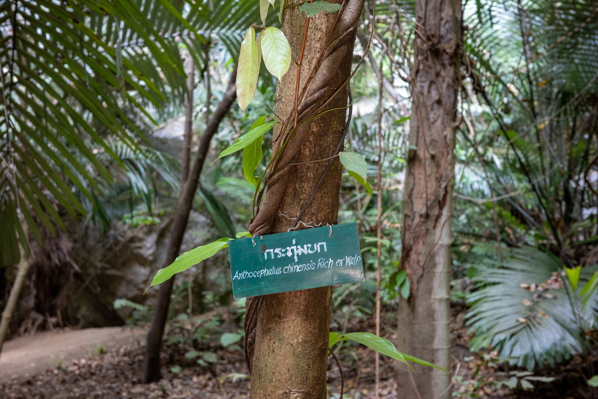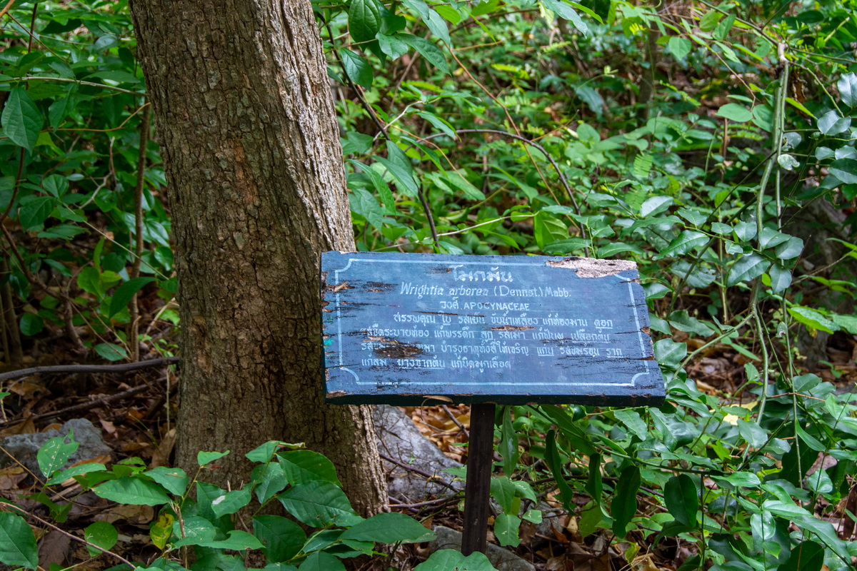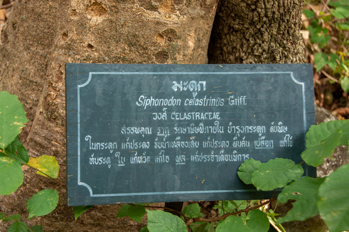 บัวสันโดษ หรือ ชื่อเรียกอื่นๆ แผ่นดินเย็น ว่านพระฉิม ชื่อทางวิทยาศาสตร์ Nervilia aragoana Gaud. จัดอยู่ในวงศ์ : ORCHIDACEAE เป็นไม้ล้มลุกลงหัวขนาดเล็ก ลำต้นงอกออกจากหัว ซึ่งเป็นสมุนไพรบำรุงกำลัง แก้โรคหัวใจ แก้จุกเสียดแน่นและแก้พิษไข้ ลักษณะพิเศษคือ จะออกส่วนของดอกก่อน เมื่อดอกโรยจะเป็นใบ ดังนั้นคนส่วนใหญ่จึงจะคุ้นกับบัวสันโดษที่เป็นใบแล้ว นอกจากนี้ยังมีพันธุ์ไม้และพืชสมุนไพรอีกมากมายหลายอย่าง เช่น กะเบาลิง สมพง ปออีเก้ง มะหาด มะไฟป่า สาบเสือ กระท่อมเขียว จันทน์ผา สลัดใด มะกา ซึ่งล้วนแต่เป็นพืชที่มีคุณสมบัติเป็นยาได้ จึงทำให้ที่นี่เป็นแหล่งเรียนรู้เกี่ยวกับพืชสมุนไพรอีกด้วย