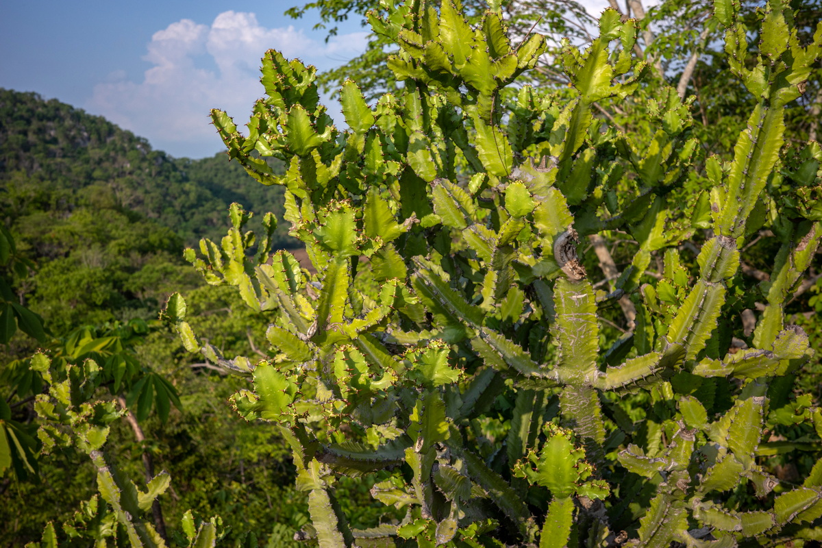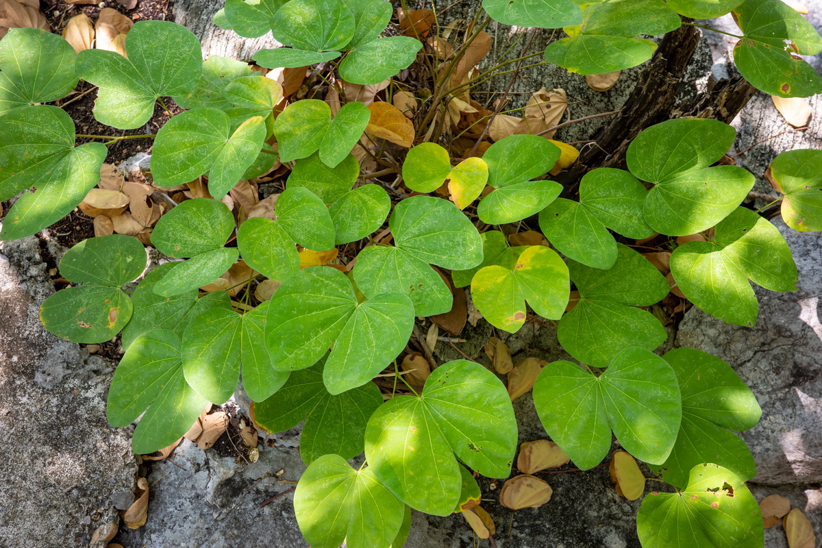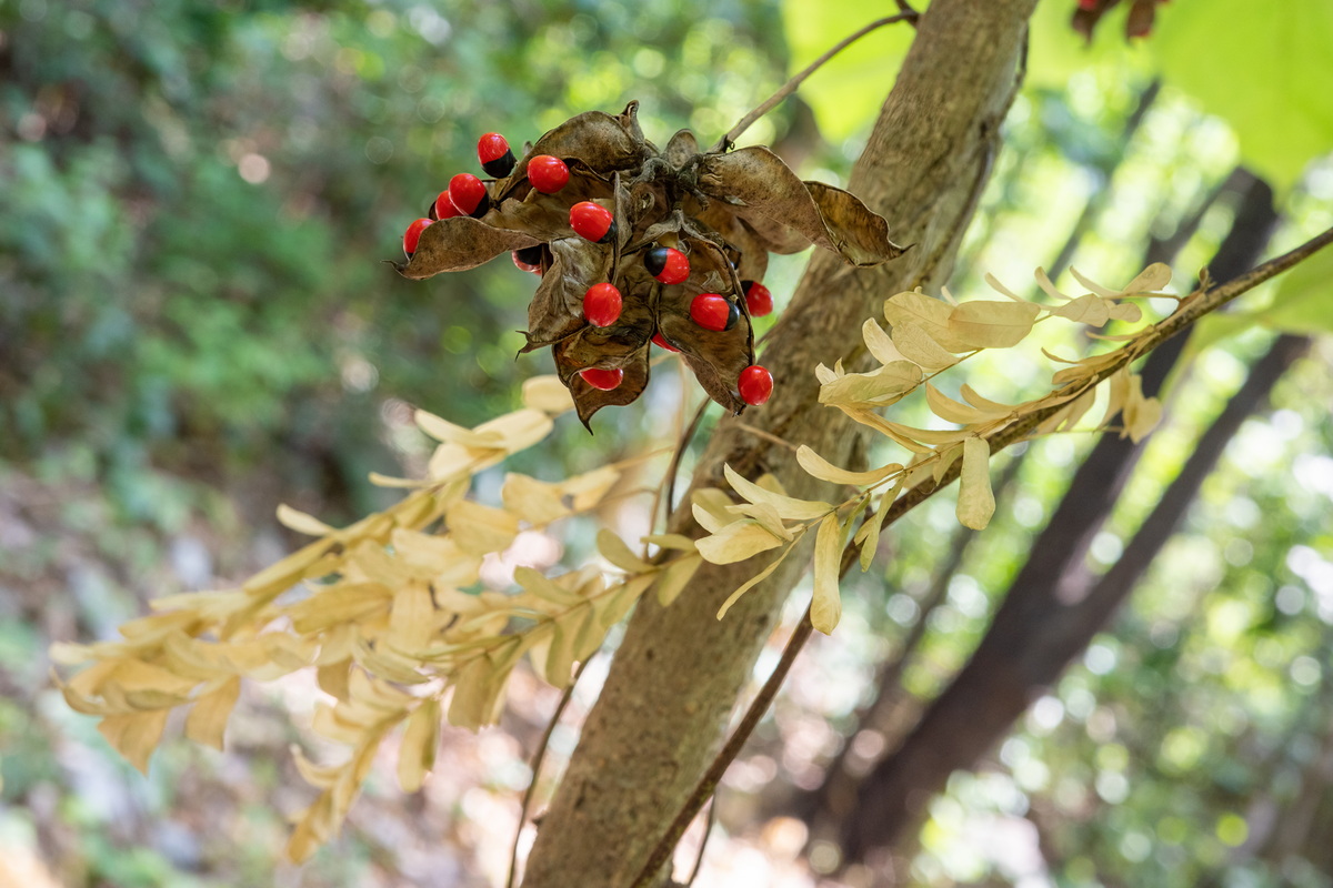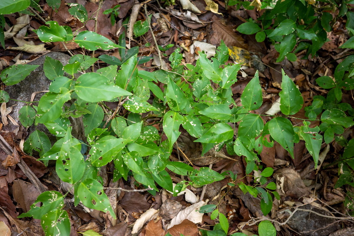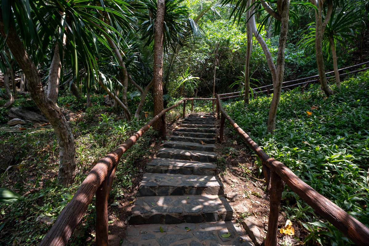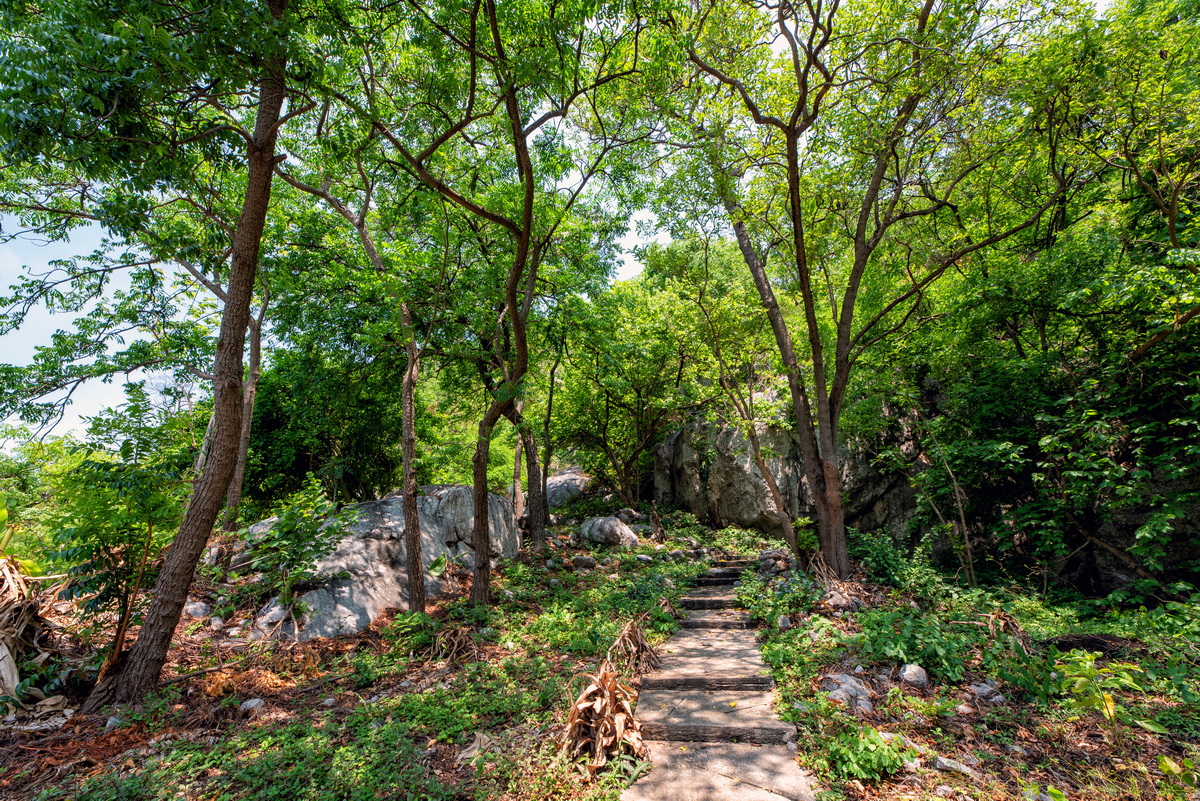 บัวสันโดษ หรือ ชื่อเรียกอื่นๆ แผ่นดินเย็น ว่านพระฉิม ชื่อทางวิทยาศาสตร์ Nervilia aragoana Gaud. จัดอยู่ในวงศ์ : ORCHIDACEAE เป็นไม้ล้มลุกลงหัวขนาดเล็ก ลำต้นงอกออกจากหัว ซึ่งเป็นสมุนไพรบำรุงกำลัง แก้โรคหัวใจ แก้จุกเสียดแน่นและแก้พิษไข้ ลักษณะพิเศษคือ จะออกส่วนของดอกก่อน เมื่อดอกโรยจะเป็นใบ ดังนั้นคนส่วนใหญ่จึงจะคุ้นกับบัวสันโดษที่เป็นใบแล้ว นอกจากนี้ยังมีพันธุ์ไม้และพืชสมุนไพรอีกมากมายหลายอย่าง เช่น กะเบาลิง สมพง ปออีเก้ง มะหาด มะไฟป่า สาบเสือ กระท่อมเขียว จันทน์ผา สลัดใด มะกา ซึ่งล้วนแต่เป็นพืชที่มีคุณสมบัติเป็นยาได้ จึงทำให้ที่นี่เป็นแหล่งเรียนรู้เกี่ยวกับพืชสมุนไพรอีกด้วย