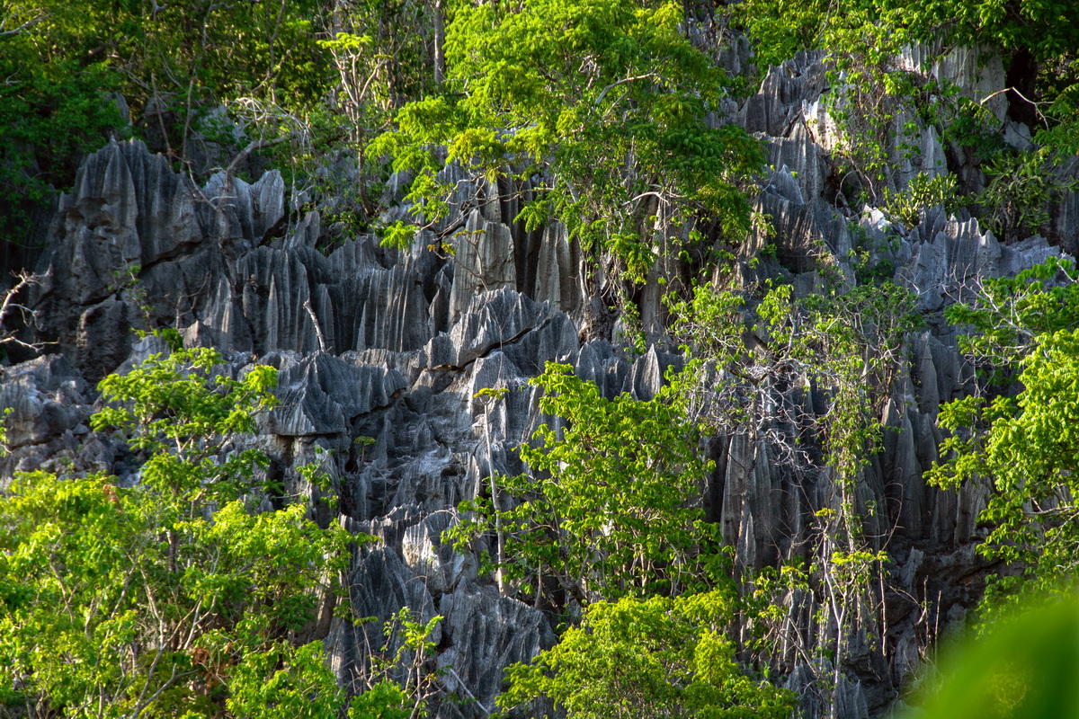 หินย้อยตามแสง จะต่างจากหินย้อยทั่วไปตรงที่ ปกติหินย้อยจะเป็นปรากฏการณ์น้ำฝนที่ซึมละลายหินปูนไหลย้อยลงมาเป็นแท่งตรงในแนวดิ่งตามการไหลของหยดน้ำ แต่หินย้อยตามแสงจะเอนเอียงแหงนขึ้นไปหาแสงแดด ซึ่งส่วนใหญ่จะอยู่บริเวณปากถ้ำ เดิมก็เป็นหินย้อยปกติทั่ว ๆ ไป แต่พอหยดน้ำหินย้อยจากหินปูนเริ่มก่อตัว ก็จะเกิดพวกตะไคร่น้ำ หรือพืชชั้นต่ำมาเกาะตรงส่วนปลาย ซึ่งพืชพวกนี้ยังหาแสงเพื่อดำรงชีวิตอยู่ มันเลยค่อย ๆ ดึงน้ำหยดของหินย้อยปกติให้เอนเอียงขึ้นไปรับแสงเกิดเป็น “หินย้อยตามแสง”