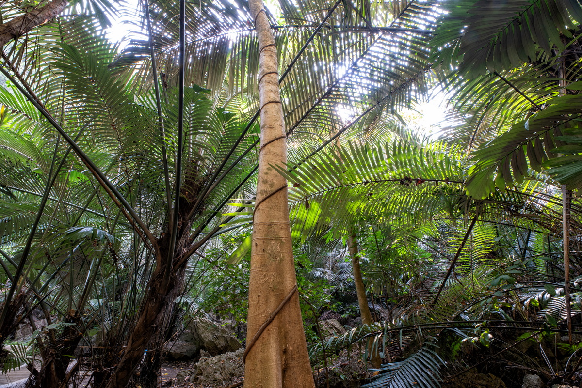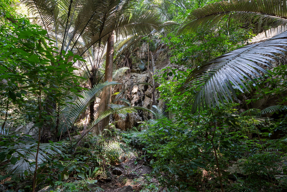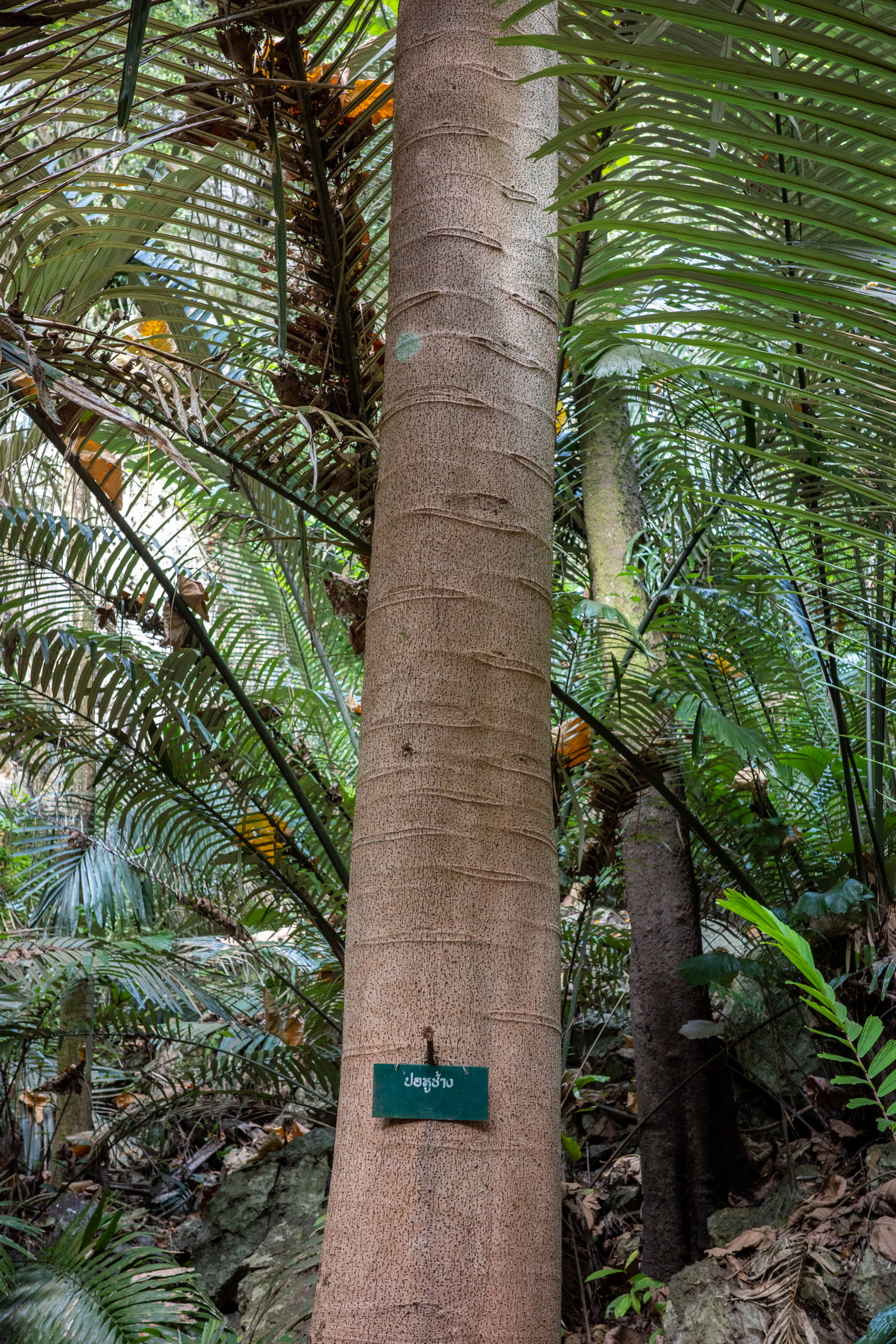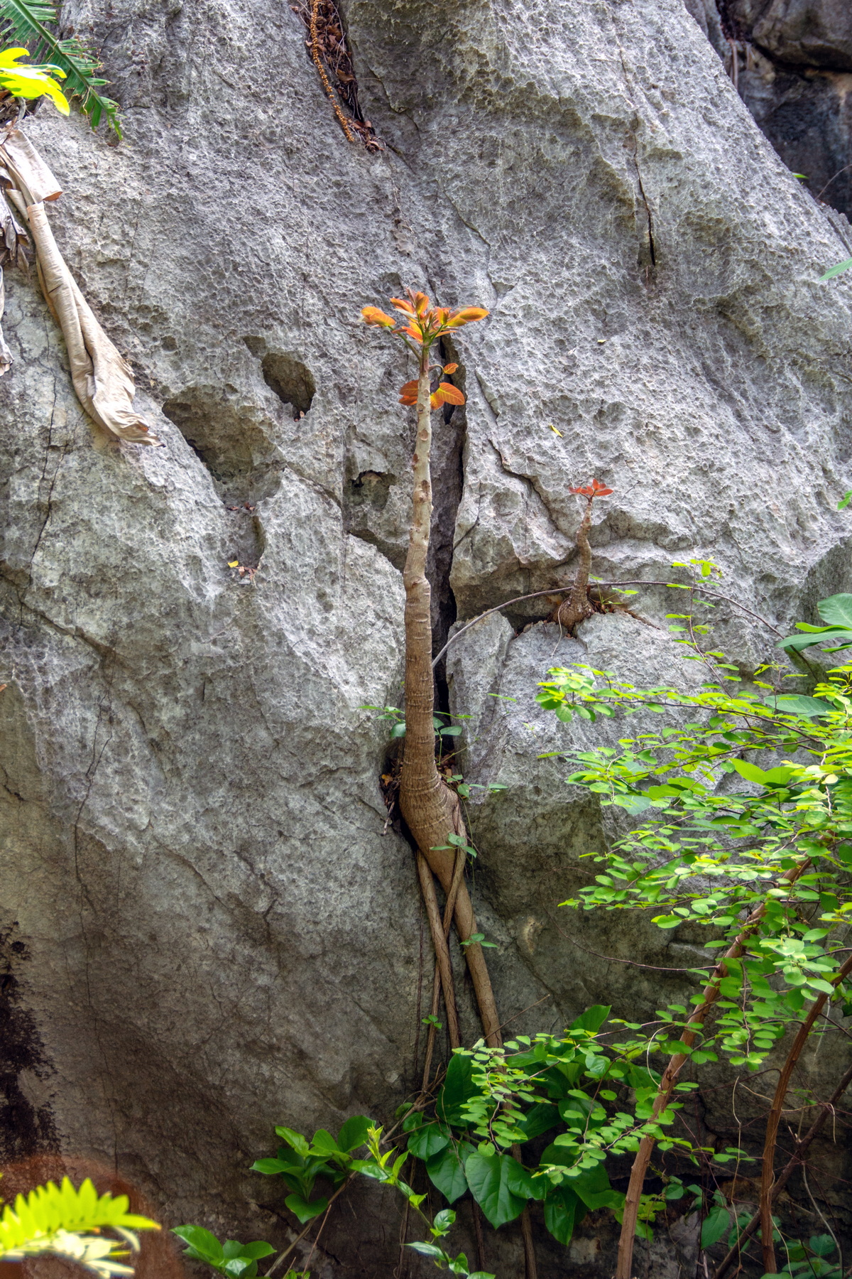 ต้นตาด (Areaga penata) หรือที่ชาวบ้านเรียกกันว่า “ต้นตาว” หรือ “ต้นต๋าว” เป็นพืชใบเลี้ยงเดี่ยวตระกูลปาล์ม ลำต้นสูงตรง แต่ไม่สูงเท่าปาล์ม หรือหมาก ไม่แตกหน่อ ไม่มีกิ่งก้านสาขา มีปล้อง มีหนาม ชอบอากาศเย็น อากาศชื้นและแสงรำไร ชอบชั้นดินลึก มักขึ้นในภูเขาหินปูน จึงทำให้ต้นตาดเติบโตได้ดีภายในหุบเขานี้ และเมื่อแพร่พันธุ์ออกไป ร่มใบของตาดที่แผ่ออกไปก็จะยิ่งปกคลุมปิดบังแสงแดดที่ส่องมาน้อยอยู่แล้ว น้อยลงไปอีก ทำให้พืชชนิดอื่นๆ ไม่สามารถเติบโตได้ ตาดเลยครองพื้นที่เกือบทั้งหมดของหุบเขา แต่ขณะเดียวกัน ด้วยความที่ตาดชอบลักษณะเฉพาะแบบนี้ จึงทำให้เติบโตที่อื่นได้ลำบาก ถือเป็นพืชเฉพาะถิ่นที่หาได้ยาก และควรต้องอนุรักษ์ไว้ นอกจากตาดแล้วจะยังมีพืชอื่นๆ ที่ชื่นชอบเขาหินและอากาศแบบนี้ แต่มีเพียงไม่กี่ชนิด เช่น ต้นเต่าร้าง เปล้า ค้างค้าวเล็ก กะพง ยมหินและไทร ที่จะเห็นขึ้นแทรกบ้างประปราย และจะมีไม้ชั้นบน หรือไม้สูงโปร่งที่พบมากก็คือ ต้นกะพง หรือ ต้นสมพง เป็นไม้โตเร็ว ผิวบาง มีรากพูพอนที่ใหญ่สามารถยึดกับดินได้ดี และต้นกะเชา ผิวหนา เรียกว่าเป็นต้นเบิกนำ มีลักษณะสูง จะมีไม้ที่เกาะอิงอาศัย จะเป็นพวกตระกูล ตะเข็บ ตะขาบ ท้ายเฟิร์น