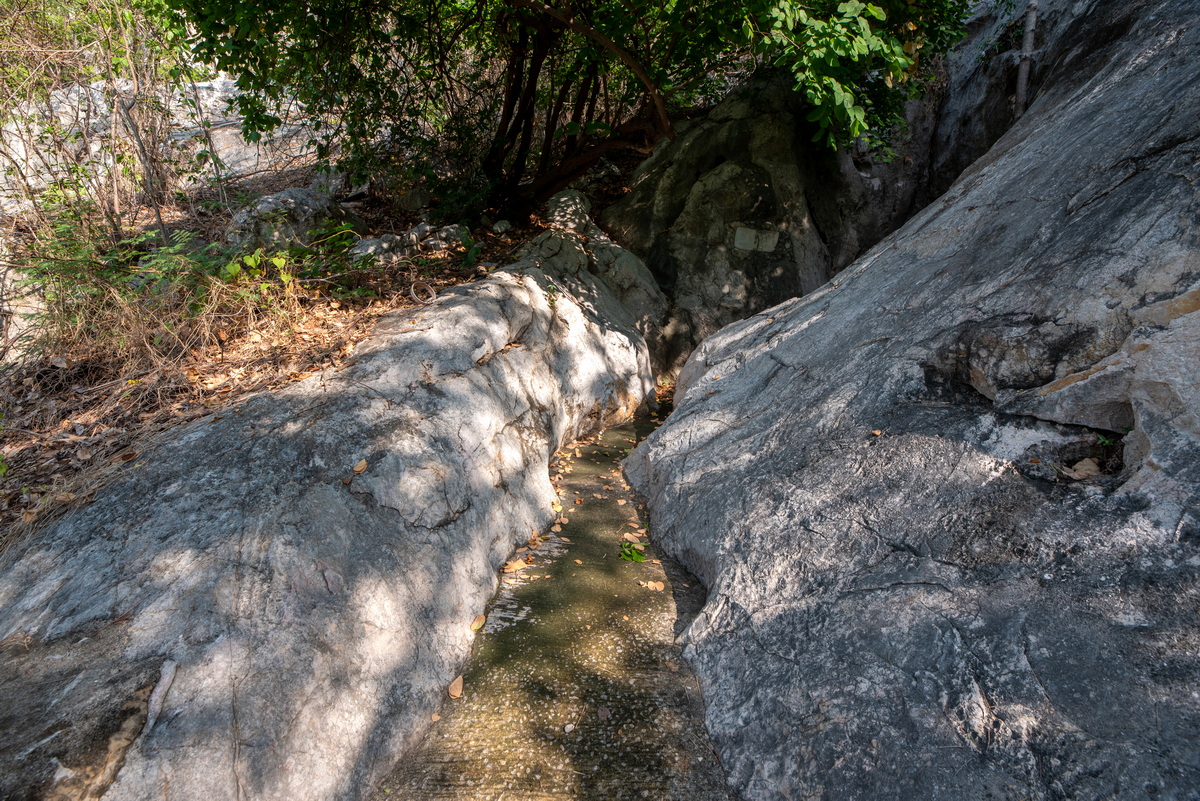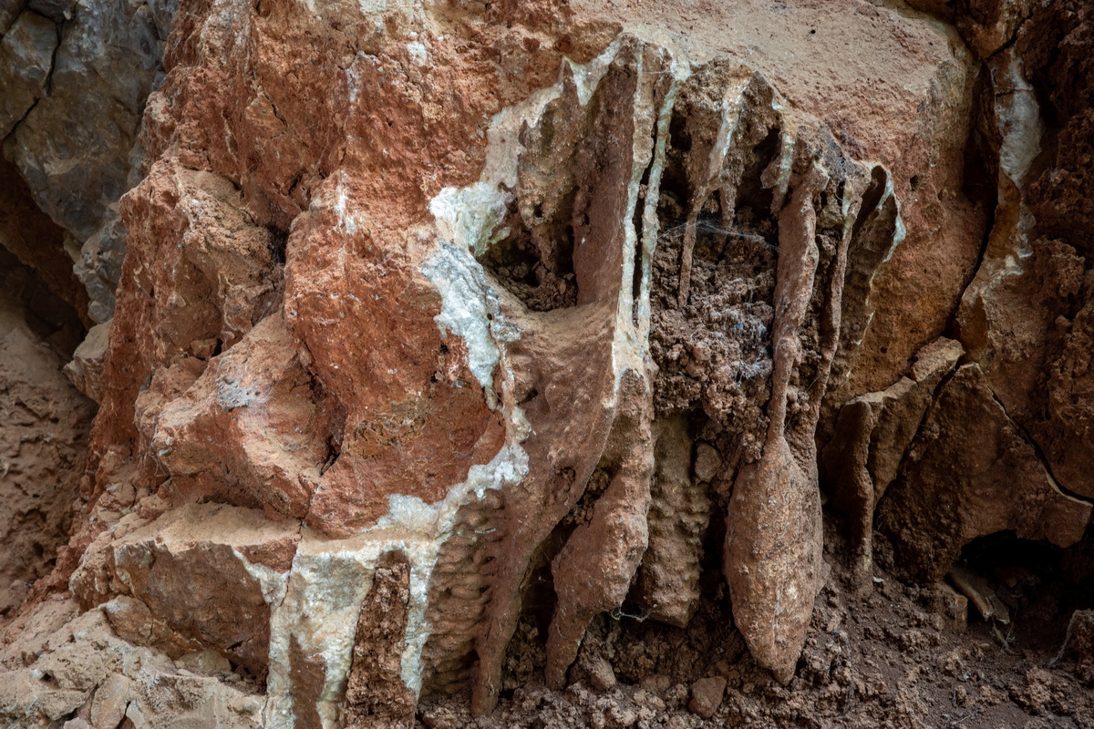 เมื่อไหลซึมลงสู่ใต้ดิน กรดอ่อนนี้จะแทรกซึมไปตามรอยร้าวของพื้นที่ ที่เกิดจากตะกอนแคลเซียมคาร์บอเนตและทำละลายหินปูนได้เป็นอย่างดี จึงเกิดการกัดกร่อนจนเป็นโพรงถ้ำ