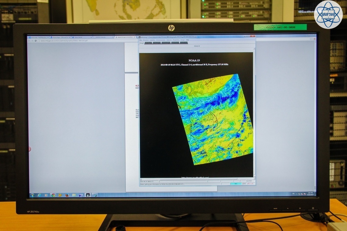 - ดาวเทียมสำหรับอุตุนิยมวิทยา ได้แก่ ดาวเทียม NOAA ดาวเทียม GOES และดาวเทียม MTSAT ดาวเทียมประเภทนี้นำมาใช้ประโยชน์ในแง่ของการพยากรณ์อากาศ การตรวจวัดสิ่งผิดปรกติเกี่ยวกับสภาพภูมิอากาศ โดยจะทำการถ่ายภาพก้อนเมฆที่ปกคลุมโลก ติดตามการก่อตัวและเคลื่อนตัวของพายุ การโคจรของดาวเทียมอุตุนิยมวิทยา จะมีอยู่สองลักษณะโดยจะมีทั้งประเภทโคจรแบบวงโคจรค้างฟ้า โดยจะทำหน้าที่ถ่ายภาพก้อนเมฆและส่งภาพกลับมาเพื่อประมวลผลเกี่ยวกับสภาพภูมิอากาศ ทั้งดาวเทียมประเภทนี้ยังมีการโคจรแบบวงกลมอีกด้วย โดยจะเคลื่อนที่ผ่านจุดเดิมวันละ 2 ครั้ง เพื่อทำหน้าที่ถ่ายภาพคลื่นแม่เหล็กไฟฟ้าที่สะท้อนออกมาจากผิวโลกเพื่อนำไปใช้ในการตรวจวัดระดับไอน้ำในชั้นบรรยากาศ โดยดาวเทียมสำหรับอุตุนิยมวิทยานี้จะมีฐานรับรับสัญญาณอย่างเดียว ซึ่งตั้งอยู่ที่ลาดกระบัง
