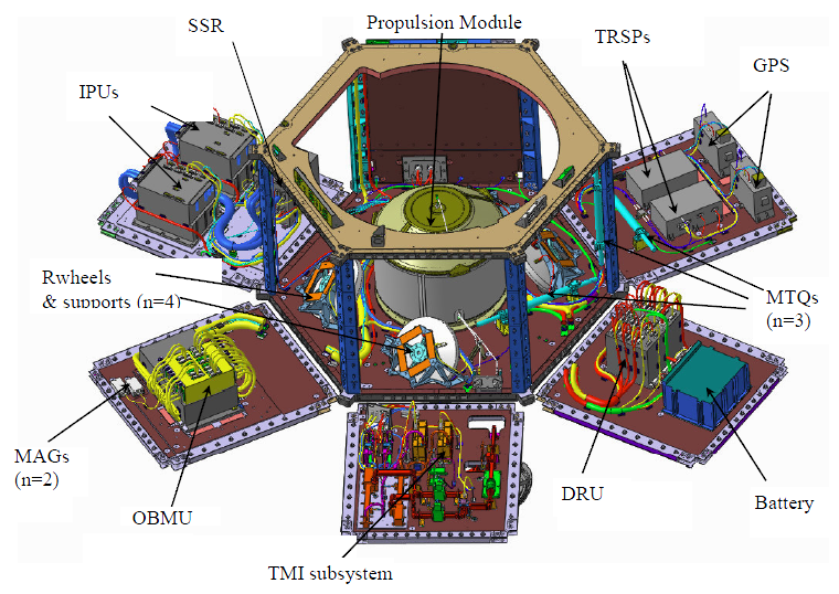 ภาพแสดงส่วนประกอบการทำงานของดาวเทียม THEOS ในส่วนของ Bus