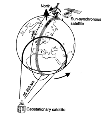 3.1 ชนิดวงโคจรค้างฟ้า (Geostationary Meteorological Satellite) โคจรรอบโลกใช้เวลา 24 ชั่วโมง เท่ากับโลกหมุนรอบตัวเอง โดยวงโคจรอยู่ในตำแหน่งเส้นศูนย์สูตรของโลกมีความสูงจากพื้นโลกประมาณ 35,800 กิโลเมตร และโคจรไปในทางเดียวกับการหมุนของโลก ทำให้ตำแหน่งดาวเทียมจะสัมพันธ์กับตำแหน่งบนพื้นโลกในบริเวณเดิมเสมอ ดาวเทียมวงโคจรค้างฟ้านี้จะอยู่ที่ระดับสูงทำให้ถ่ายภาพมุมกว้างครอบคลุมทวีปและมหาสมุทร