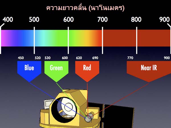 ภาพแสดงช่วงคลื่นที่กล้องบันทึกภาพของดาวเทียม THEOS จะสามารถถ่ายภาพได้