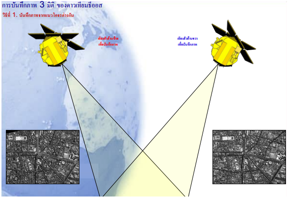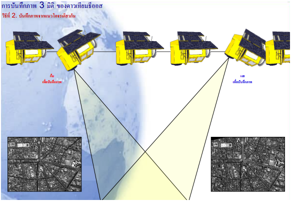 ภาพแสดงวิธีการบันทึกภาพ 3 มิติ ของดาวเทียม THEOS