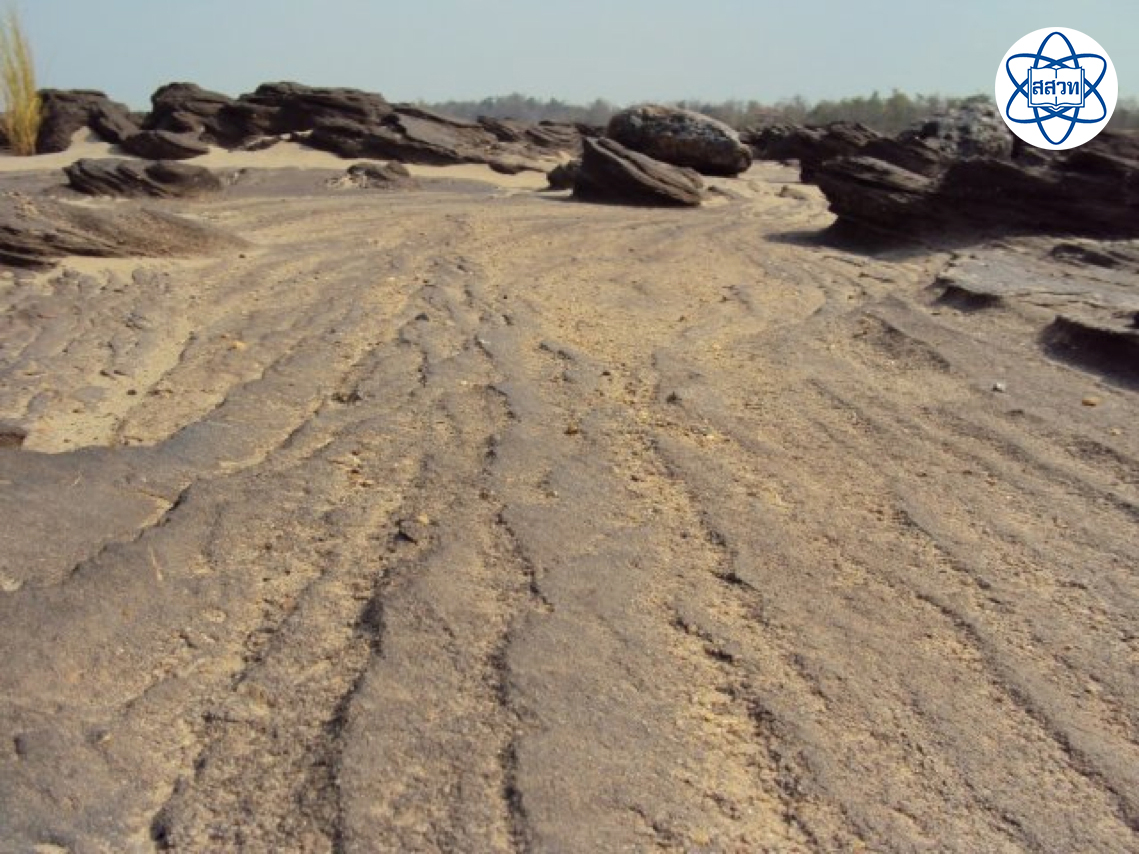 ระหว่างทางไปหาดหินสี หินพื้นท้องน้ำแตกหักและหลุดออกเกิดเป็นตะกอนก้อนหินเหลี่ยม