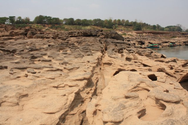 ในช่วงที่แม่น้ำโขงมีน้ำไหลผ่านในปริมาณที่น้อย พื้นท้องน้ำที่ประกอบด้วยหินตะกอน จะโผล่ปรากฎให้เห็น ในบริเวณสามพันโบกส่วนของหินท้องน้ำบริเวณฝั่งประเทศไทยที่โผล่ให้เห็น ครอบคลุมพื้นที่ประมาณ 2.35 ตารางกิโลเมตร ดูภาพลักษณะแม่น้ำโขงประกอบ