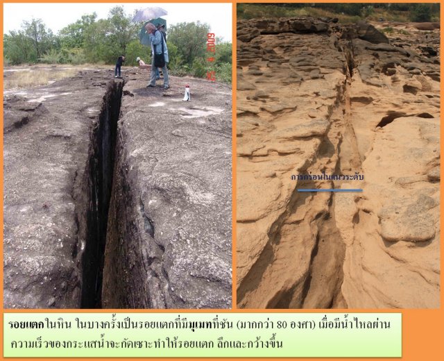 ทางน้ำที่ไหลผ่านรอยแตกในหินจะกัดเซาะทำให้หินกร่อนในแนวดิ่งและในแนวราบ