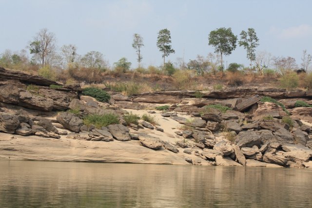 หินตะกอนจะผุพัง และถูกกร่อนออกไป โดยแม่น้ำโขง คงเหลือแต่คาลซิโดนี เนื่องจาก