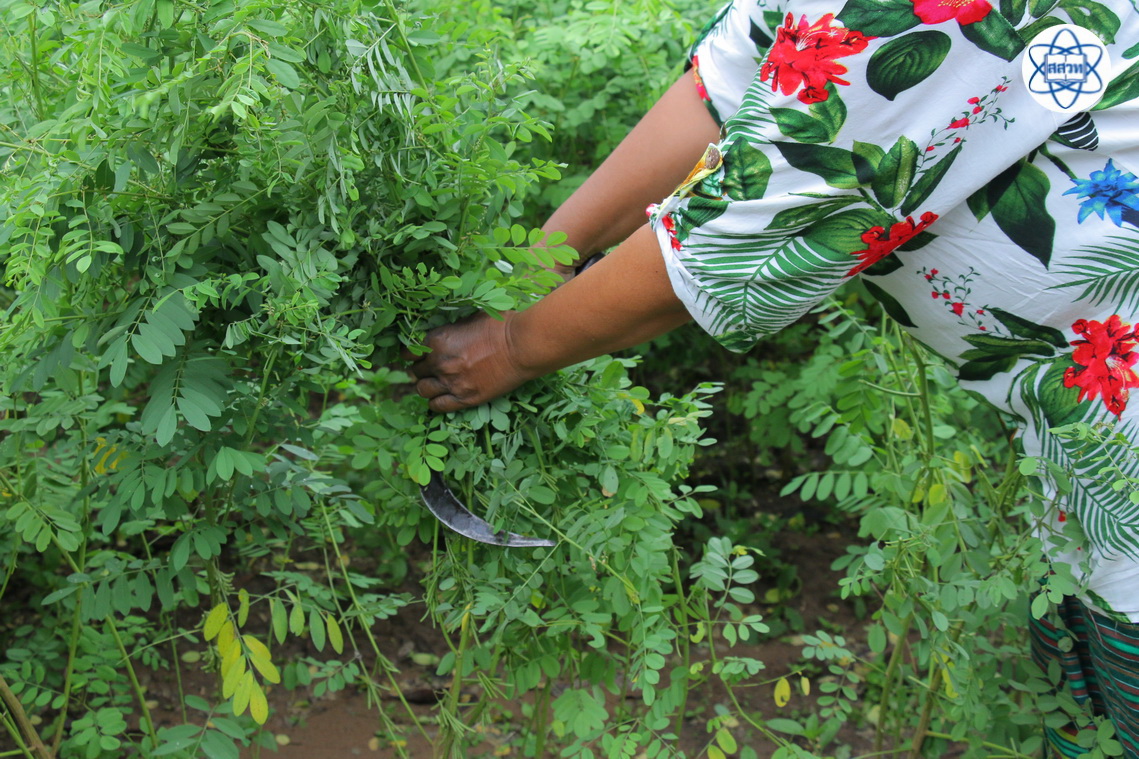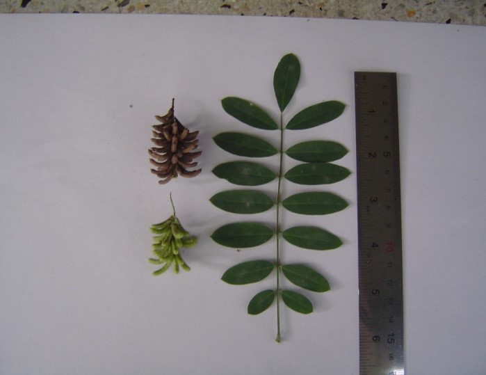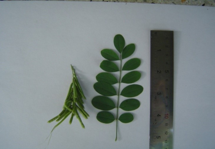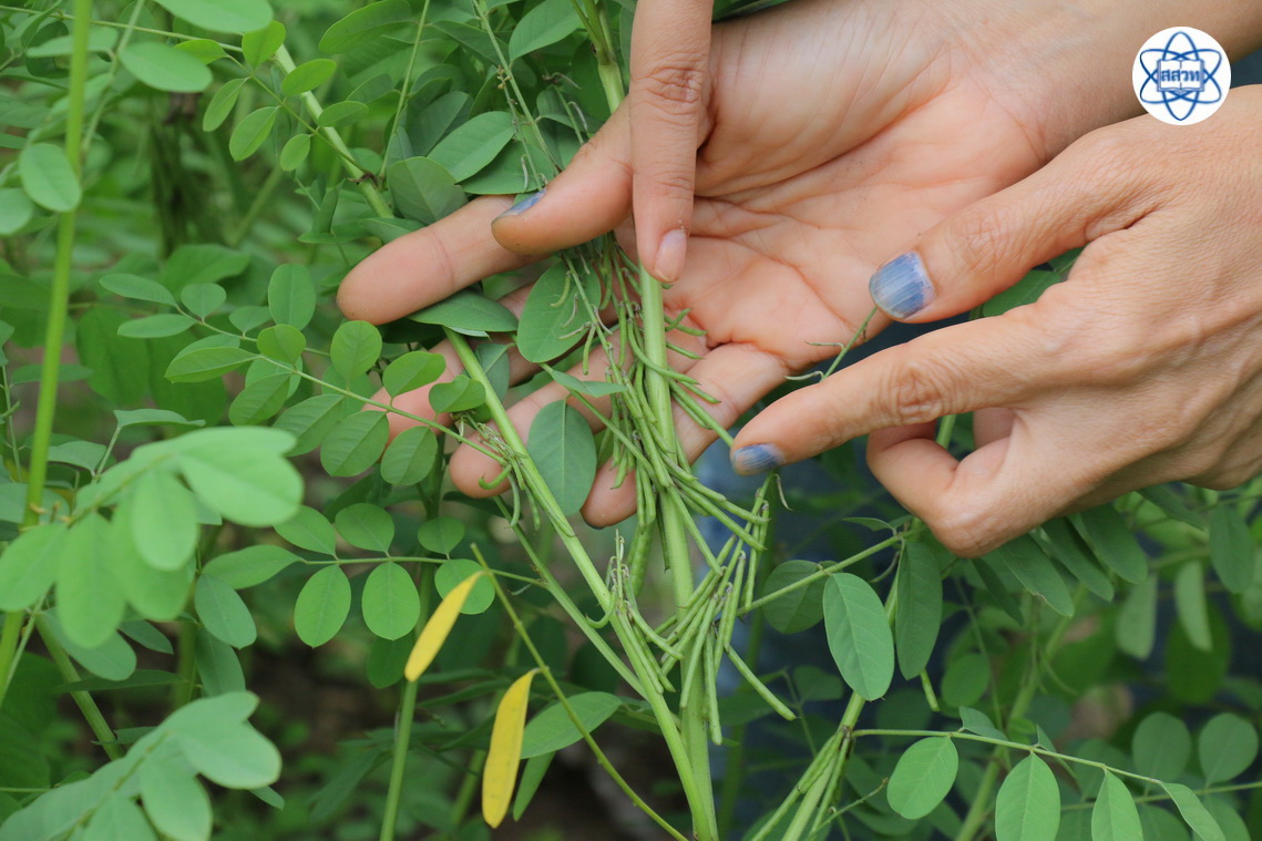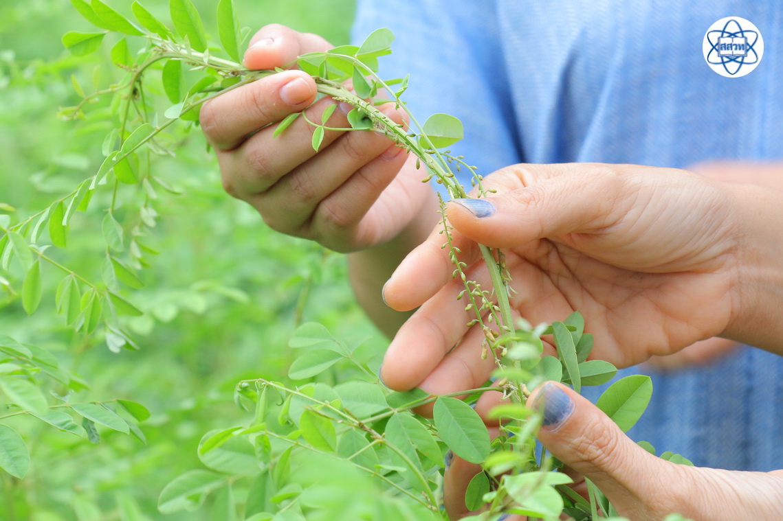 รูปที่ 6 พืชให้สีคราม ซ้าย : ครามฝักตรง กลาง : ครามฝักงอ ขวา : เปิก หรือ เบือก