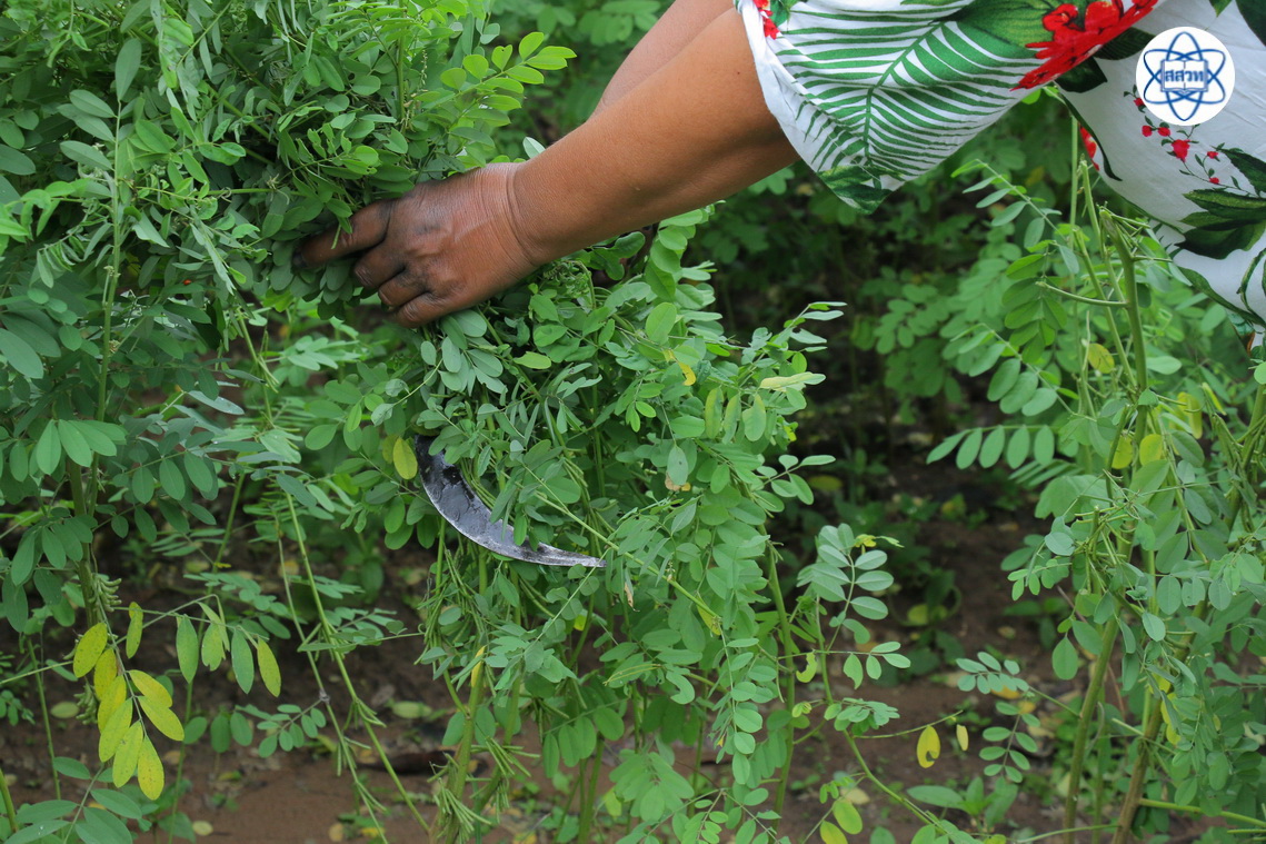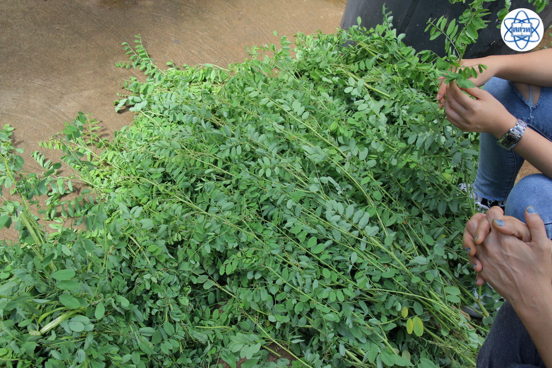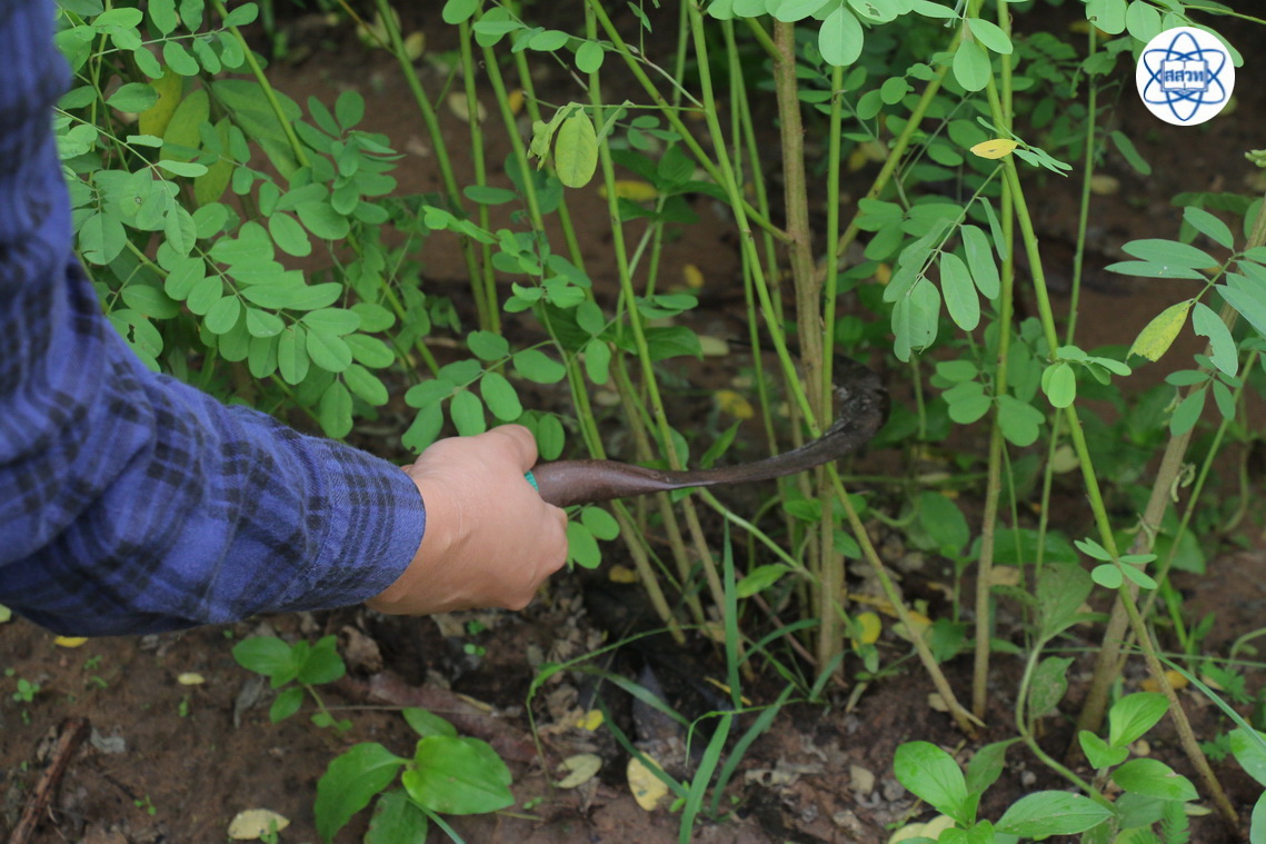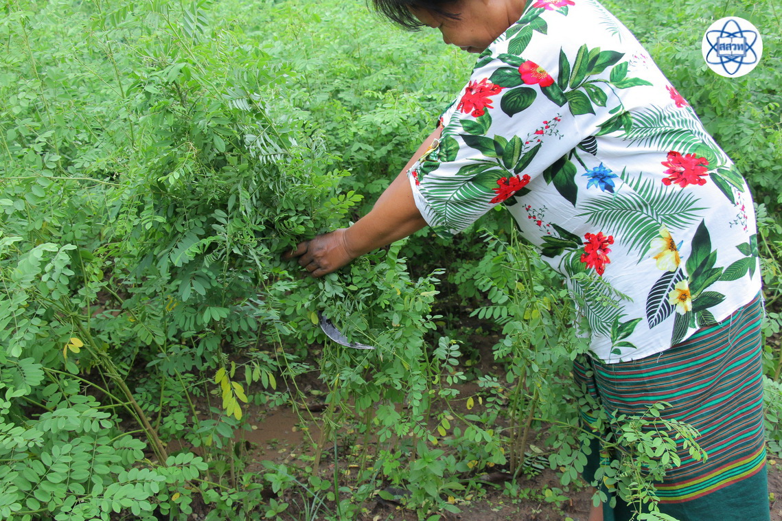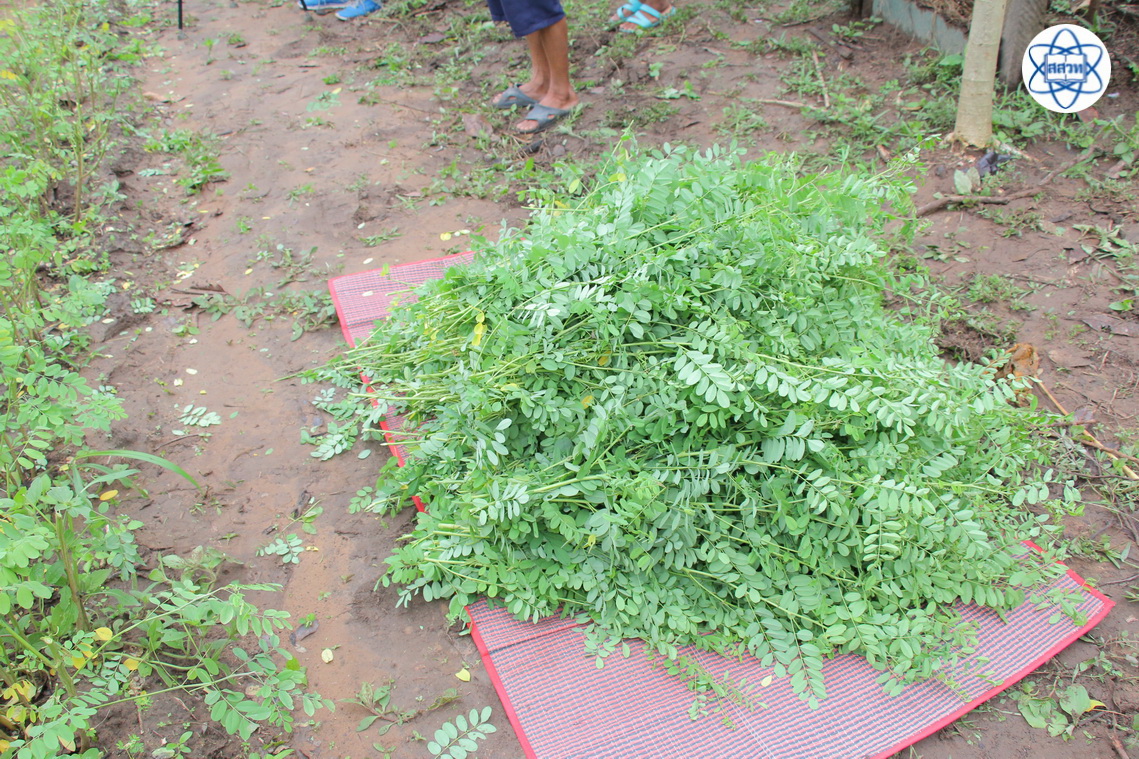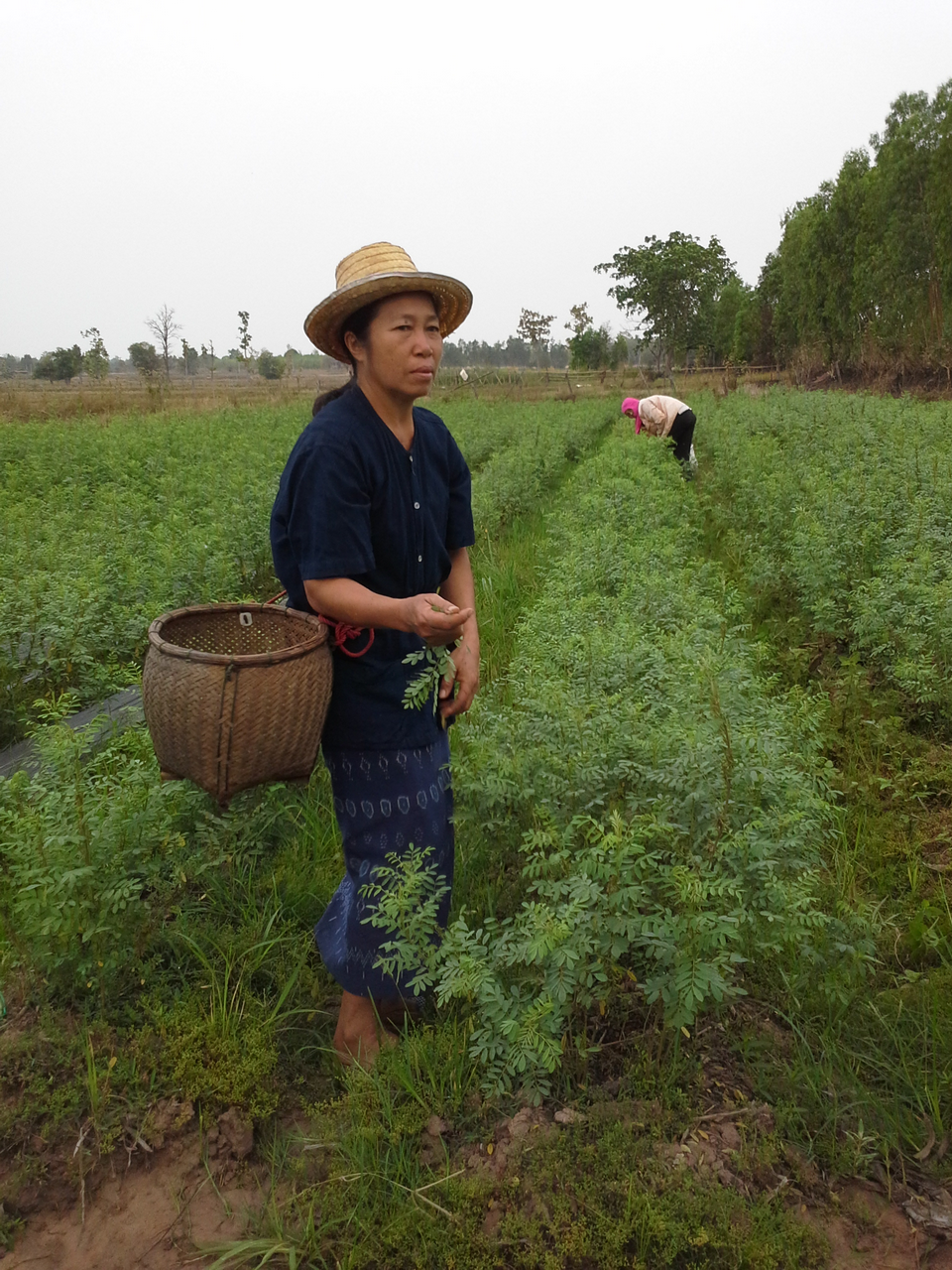 รูปที่ 7 การเก็บใบครามฝักงอทีละใบ บน : ต้นครามฤดูฝน ล่าง : ต้นครามฤดูแล้ง