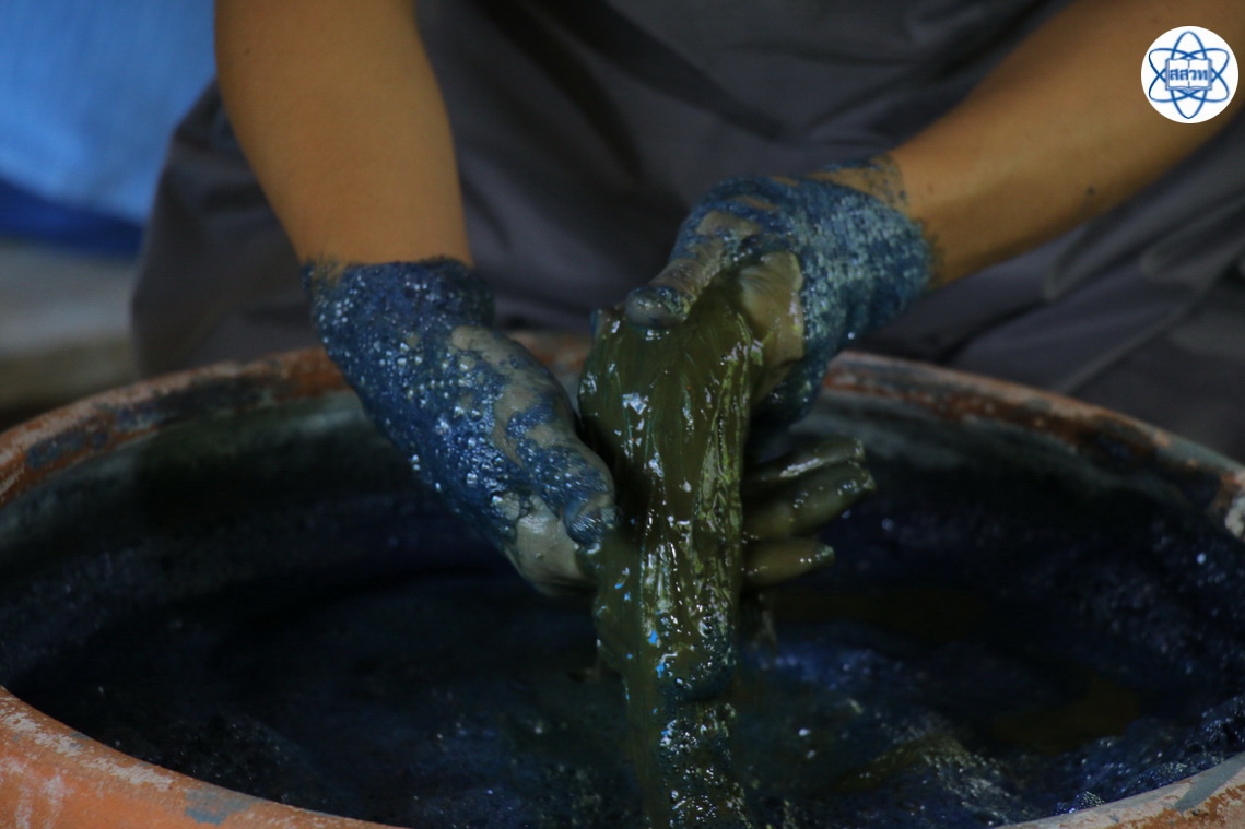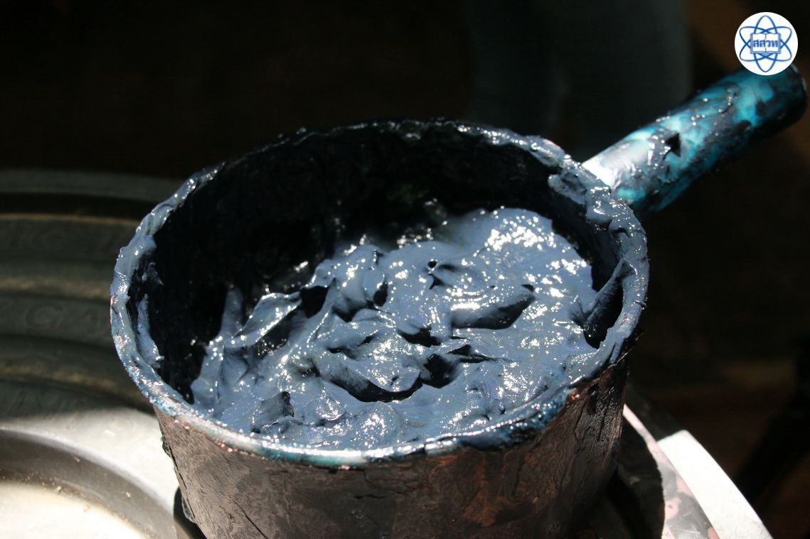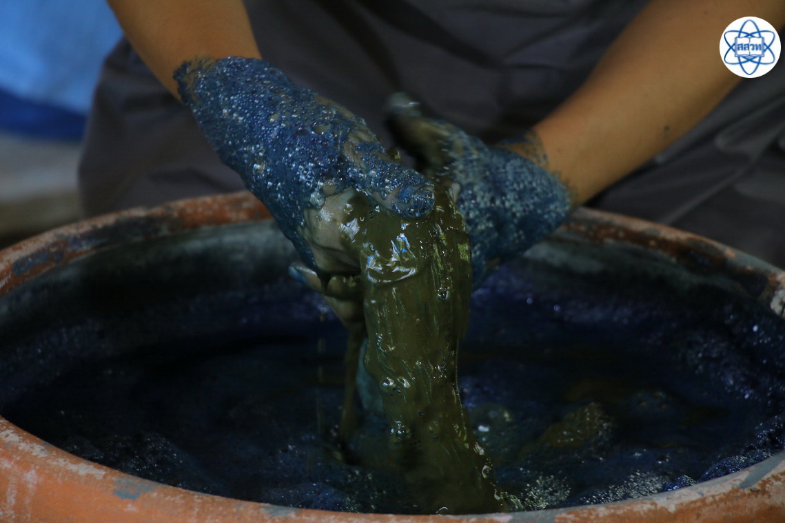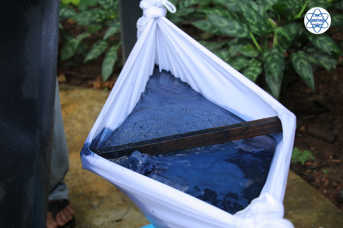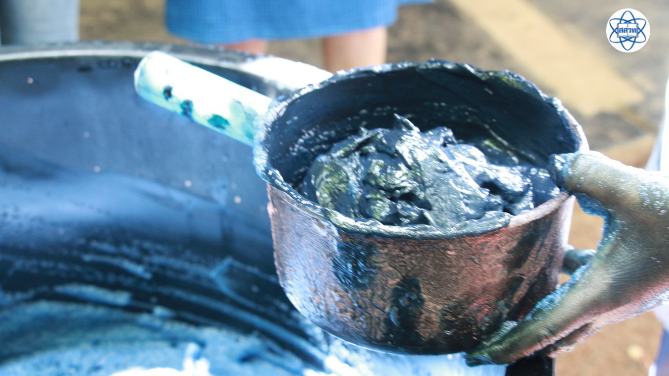 กวนน้ำครามและพักไว้ 1 คืน แยกได้เนื้อครามสีน้ำเงิน