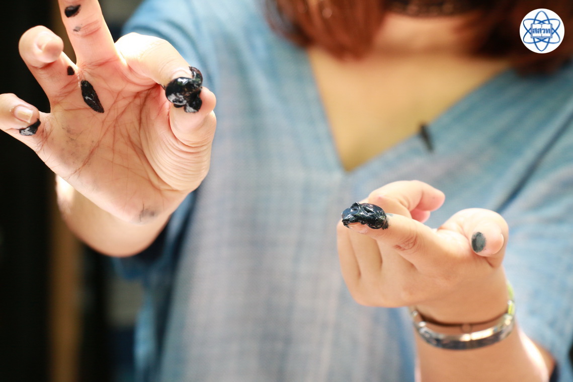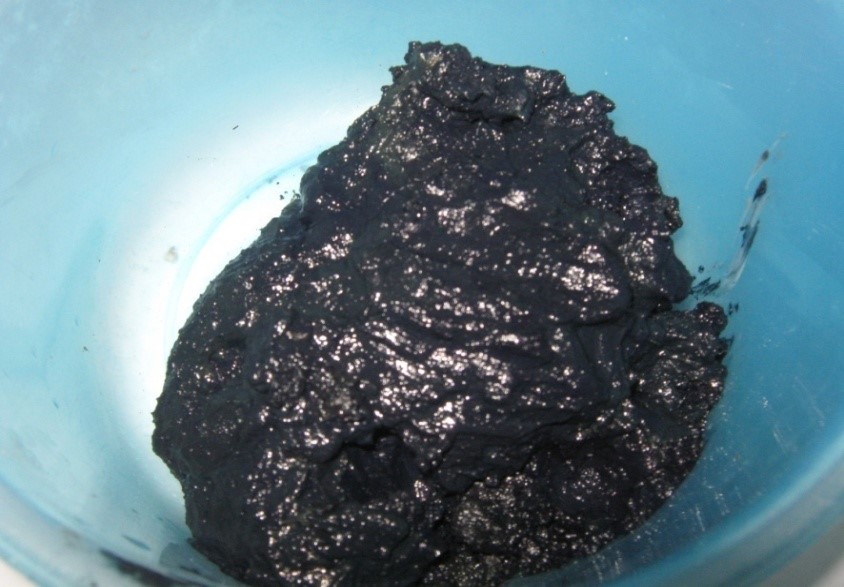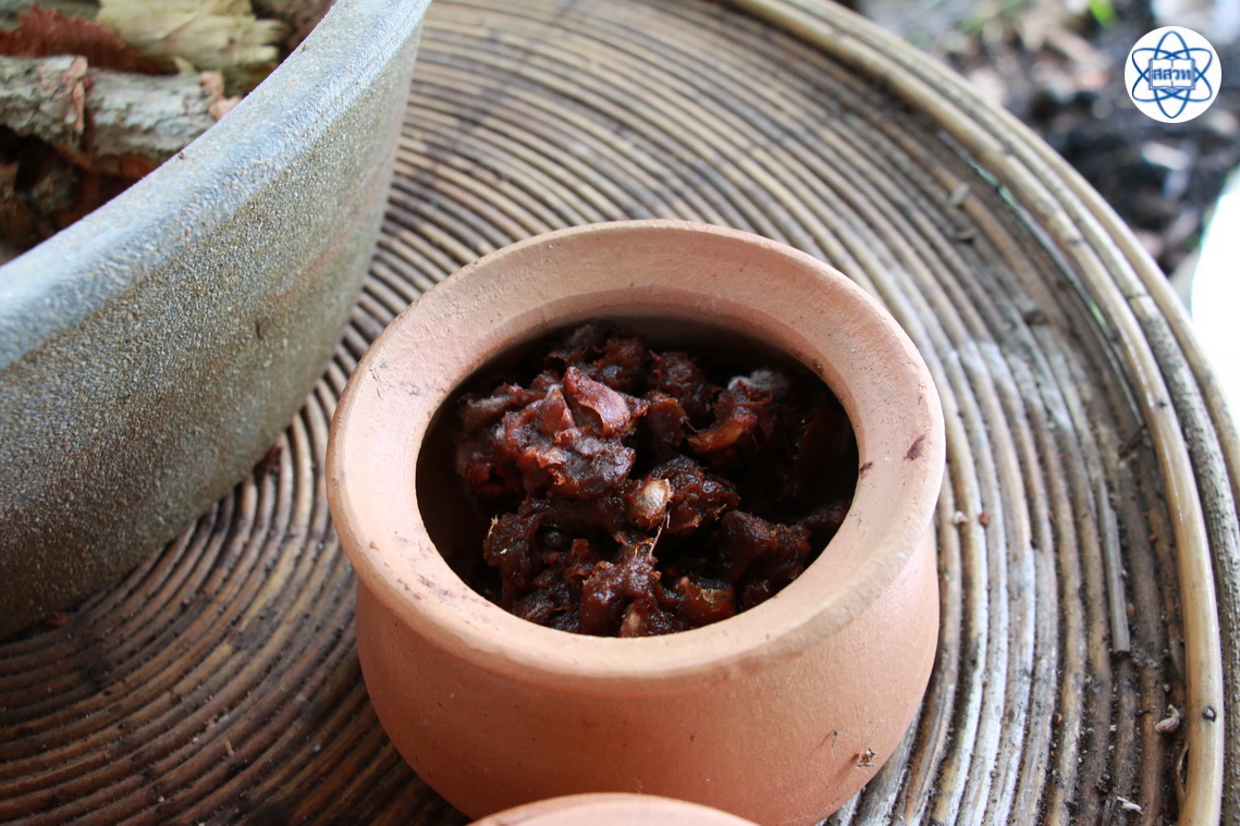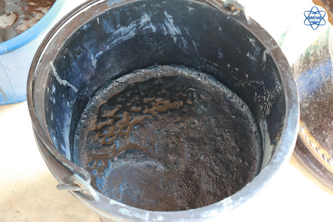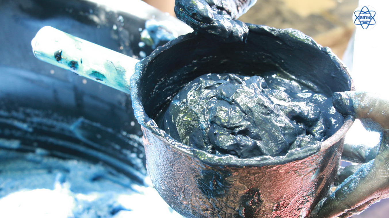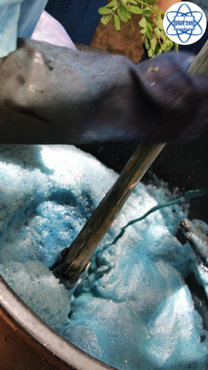 กวนน้ำครามและพักไว้ 1 คืน แยกได้เนื้อครามสีน้ำเงิน