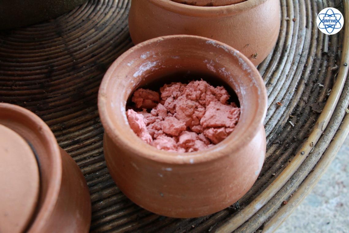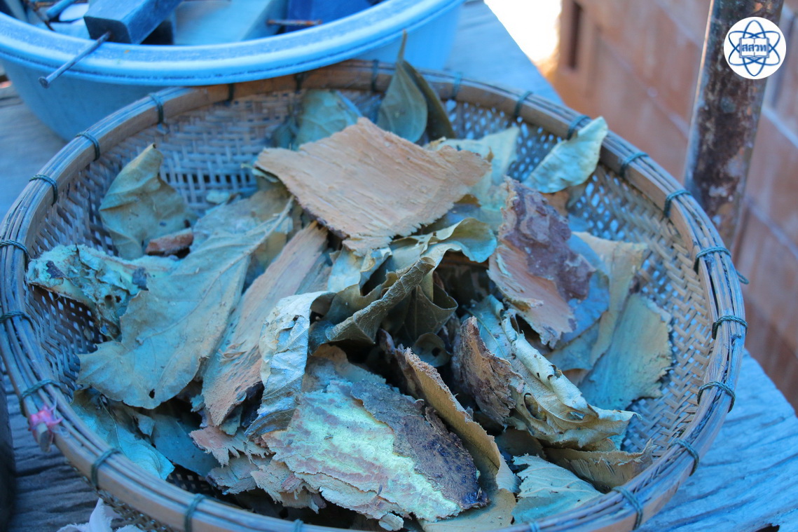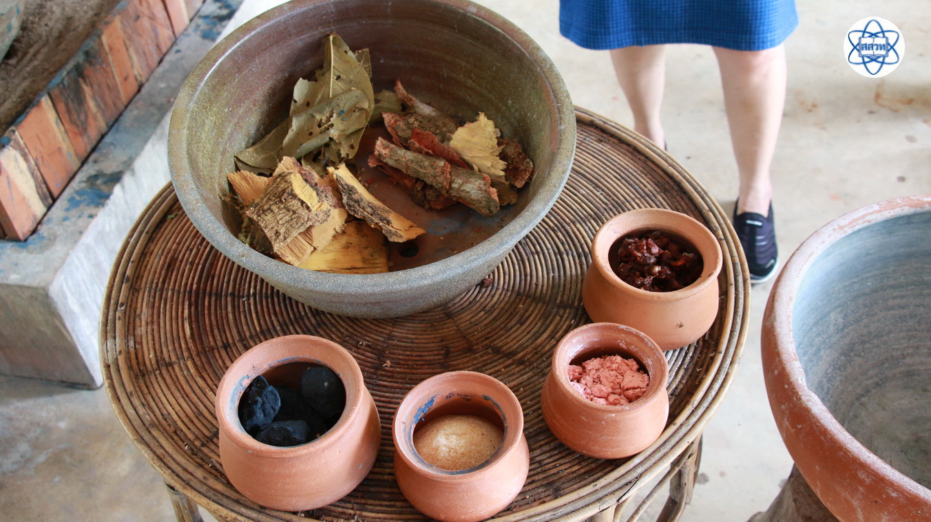 รูปที่ 10 วัตถุดิบของการก่อหม้อ และสีของน้ำย้อมที่พร้อมย้อมครั้งแรก