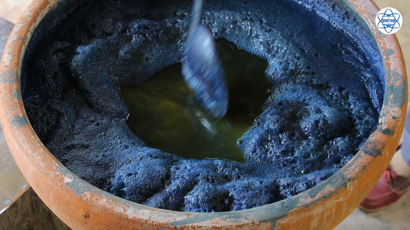 จากตอนที่แล้ว ใบครามแก่และสดถูกแช่ในน้ำ จะได้น้ำครามสีน้ำเงินปนเขียวของสารอินดิโกบลูกับอินดอกซิล หากพักไว้นานๆน้ำครามจะเปลี่ยนเป็นสีน้ำเงินเข้มขึ้นเรื่อยๆ เนื่องจากอินดอกซิลทำปฏิกิริยากับออกซิเจนในอากาศ เกิดเป็นอินดิโกบลูมากขึ้นเรื่อยๆ แต่ถ้าทำการกวนน้ำคราม ปฏิกิริยาของอินดอกซิลกับอากาศเกิดได้มาก น้ำครามจะเป็นสีน้ำเงินเข้มของอินดิโกบลูมากขึ้นด้วย น้ำครามสีน้ำเงินนำไปใช้ประโยชน์ได้หลายอย่าง เช่น นำไปเตรียมน้ำย้อม นำไปทำหมึกพิมพ์ นำไปผสมสารซักล้าง นำไปผสมน้ำสบู่ หรือเหวี่ยง แยกอินดิโกบลู แล้วเป่าให้แห้งเป็นผง โดยพัฒนาสภาพให้เหมาะสมกับการใช้งาน