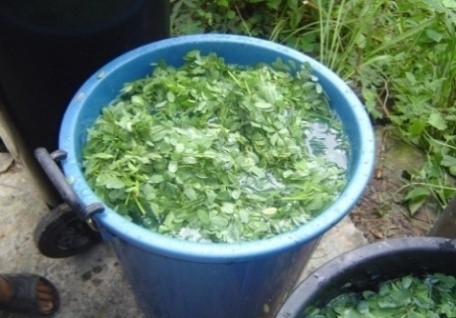 แช่ใบครามแล้วแยกกาก ได้น้ำคราม