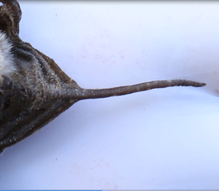 ภาพแสดง ก. ลักษณะปากของค้างคาวปากย่น