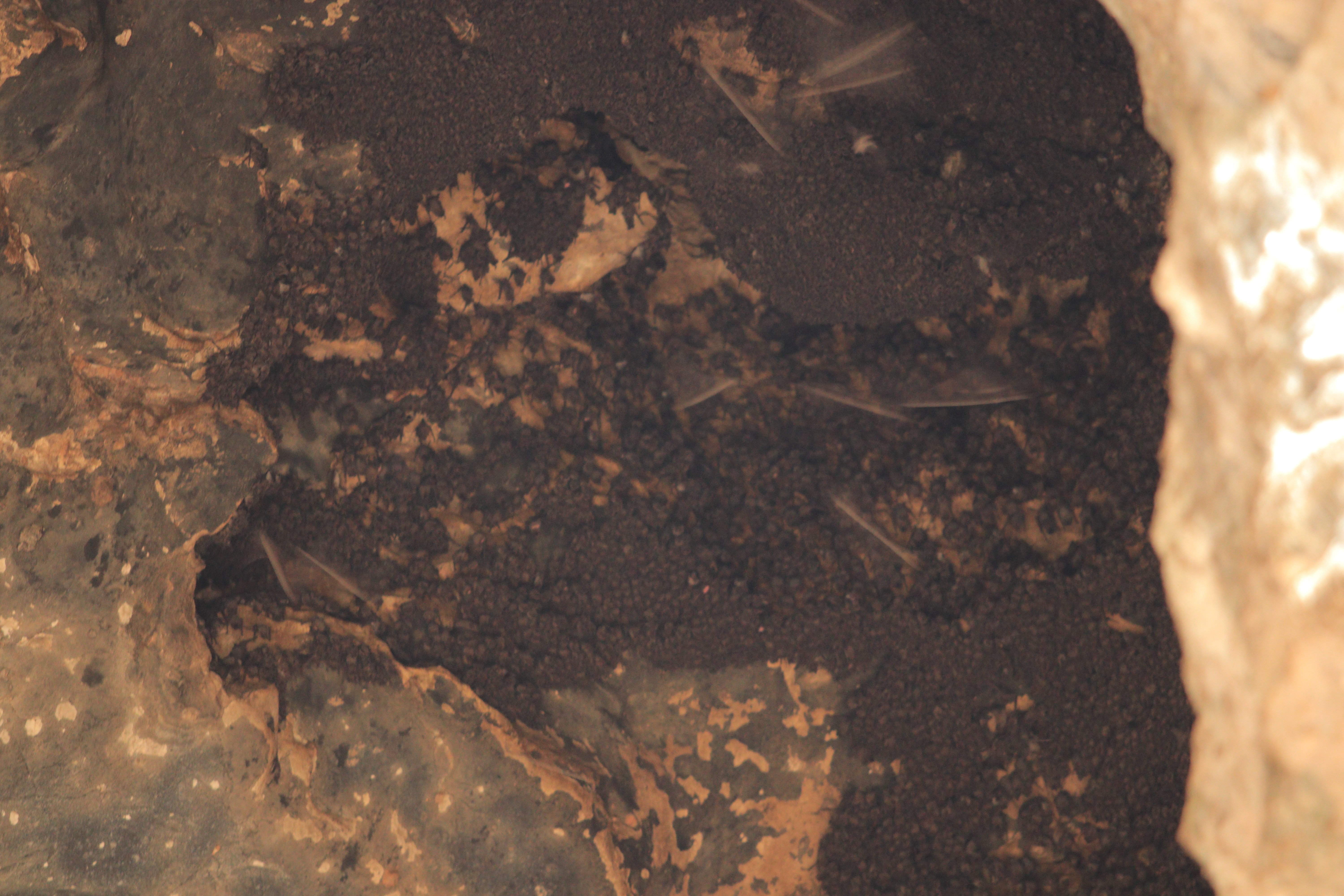 การที่มีซากค้างคาวตกที่พื้นบริเวณปากถ้ำเกิดจากการบินชนกันเอง เนื่องจากค้างคาวไม่สามารถใช้เสียงสะท้อนได้ นั่นก็คือภายในบริเวณถ้ำที่พักอาศัยของมัน ทั้งนี้อาจเป็นเพราะมันเกาะอยู่รวมกันมากๆ เสียงที่ร้องจึงรบกวนกันเอง
