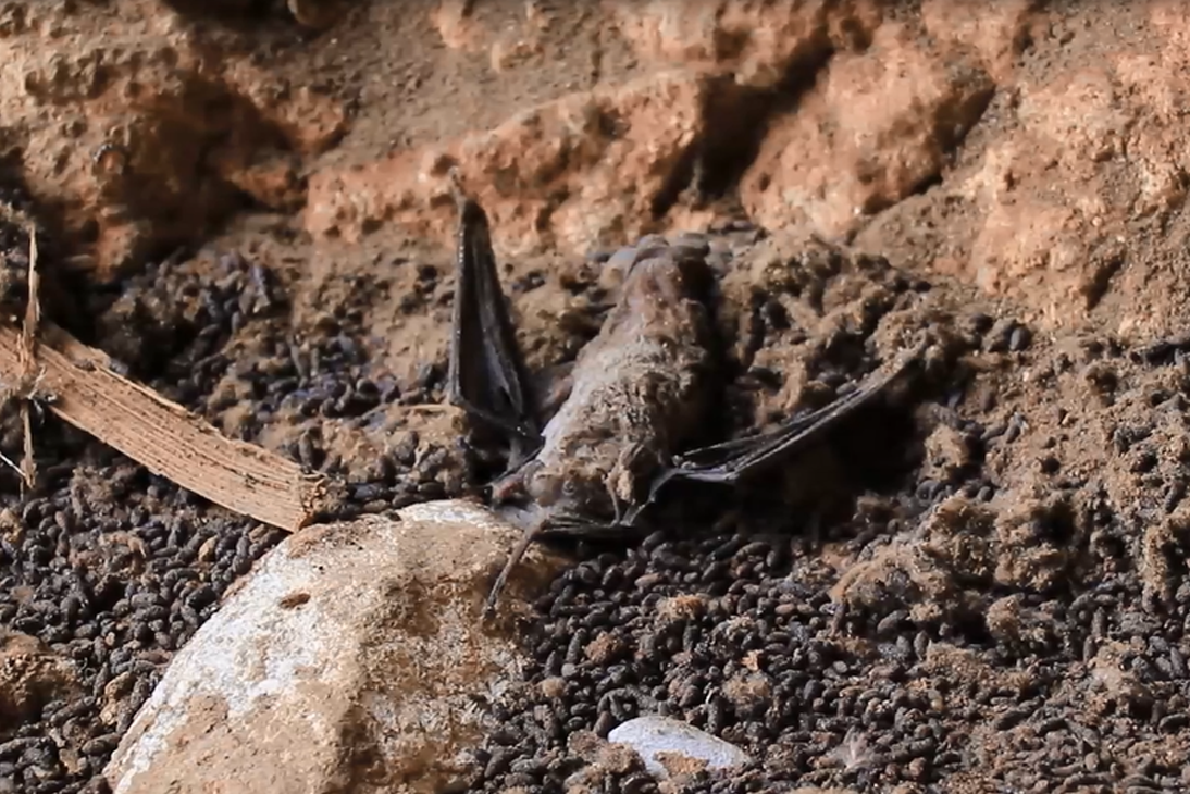 ทำไมจึงมีซากค้างคาวตกที่พื้นบริเวณปากถ้ำ