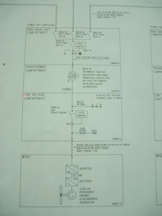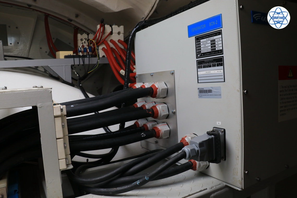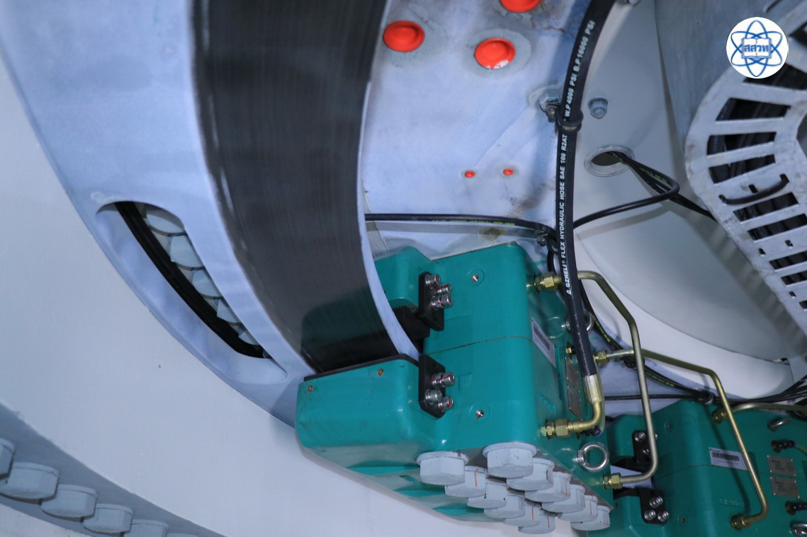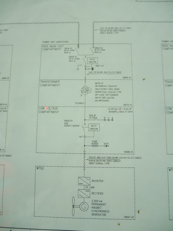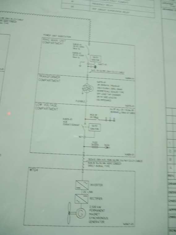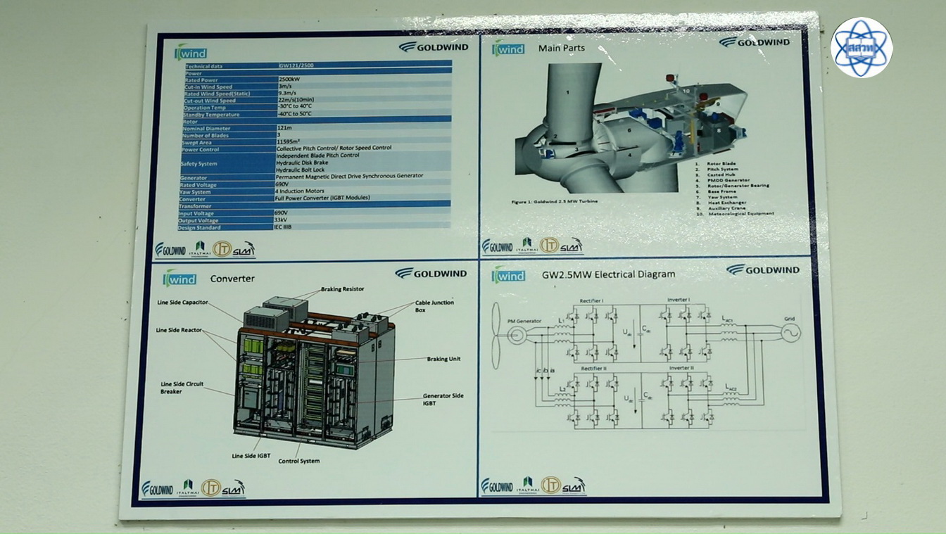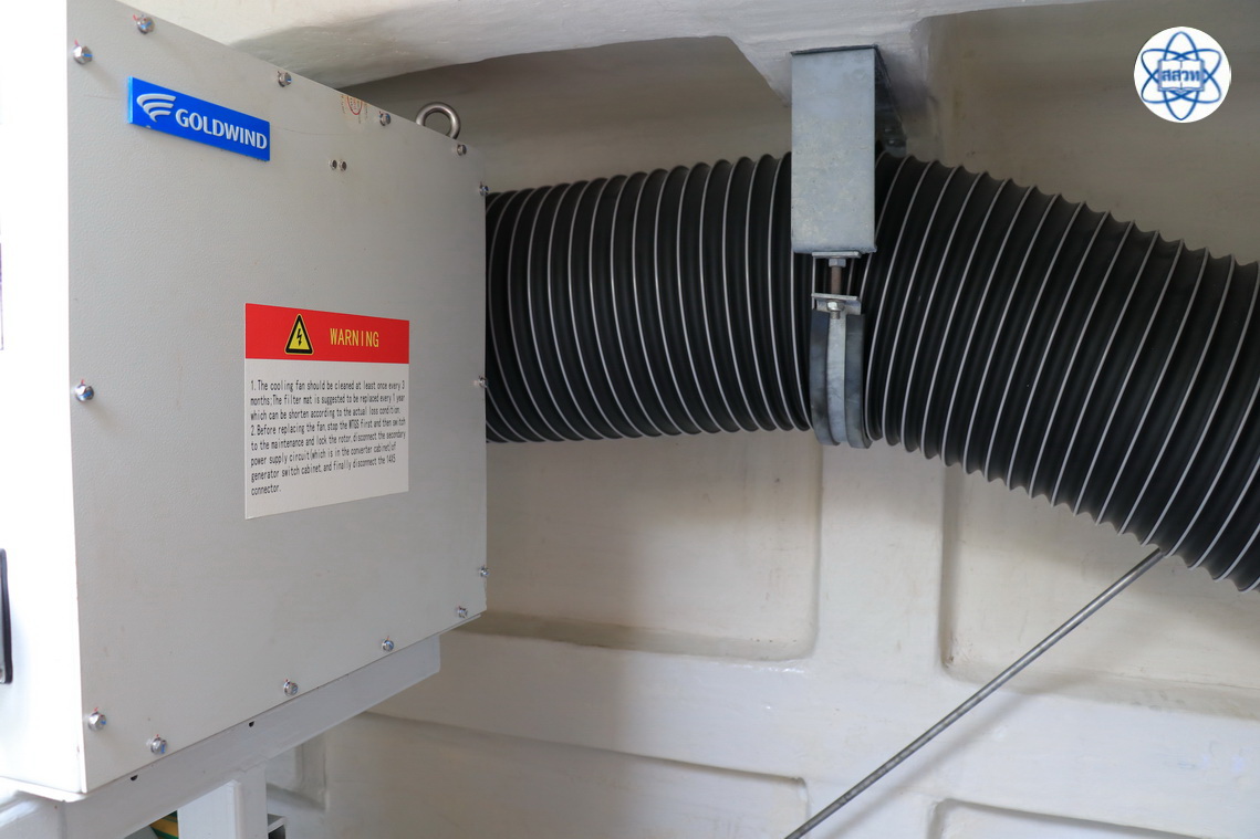 เพลาจากโรเตอร์ ต่อกับเครื่องกำเนิดไฟฟ้าโดยตรง และหมุนด้วยความเร็วเท่ากับใบพัด ในกรณีที่จะผลิตไฟฟ้าได้ โรเตอร์ที่ผลิตไฟฟ้า (เป็นรูปวงแหวน) ต้องมีเส้นผ่านศูนย์กลางที่มาก และแม่เหล็กที่ใช้เป็นแม่เหล็กที่ทำจากธาตุนีโอดิเมียม – Nb (แม่เหล็กแรเอิรธ์)