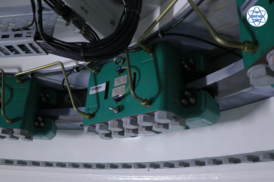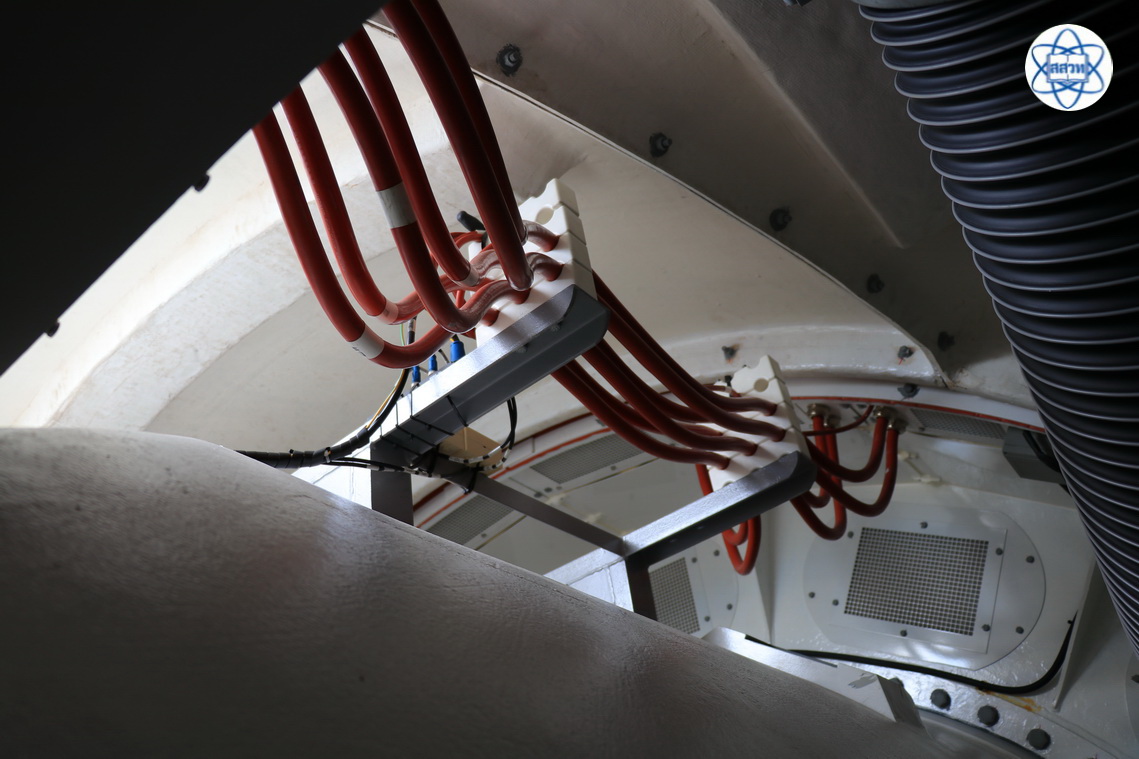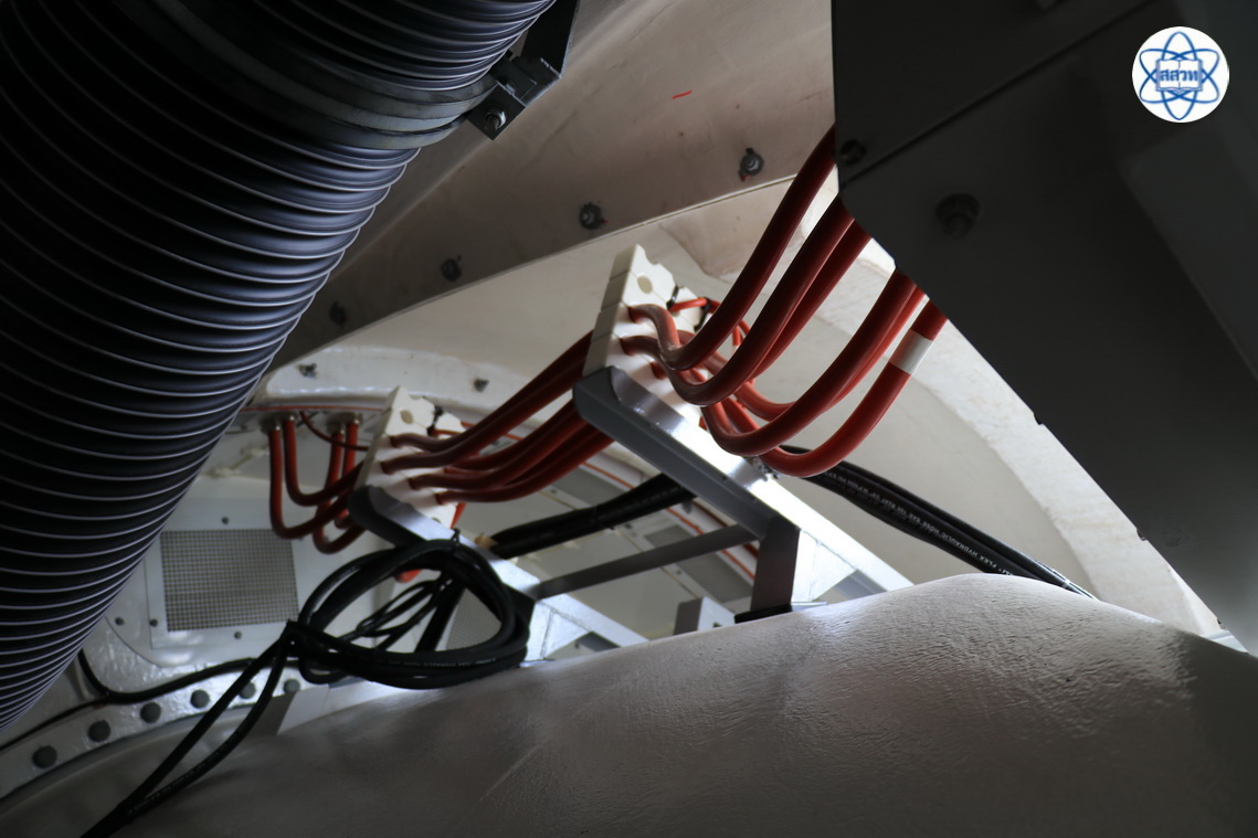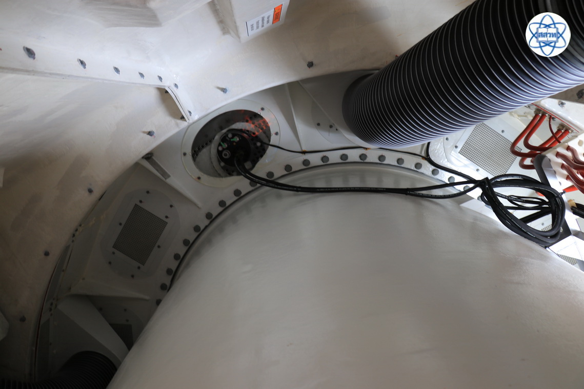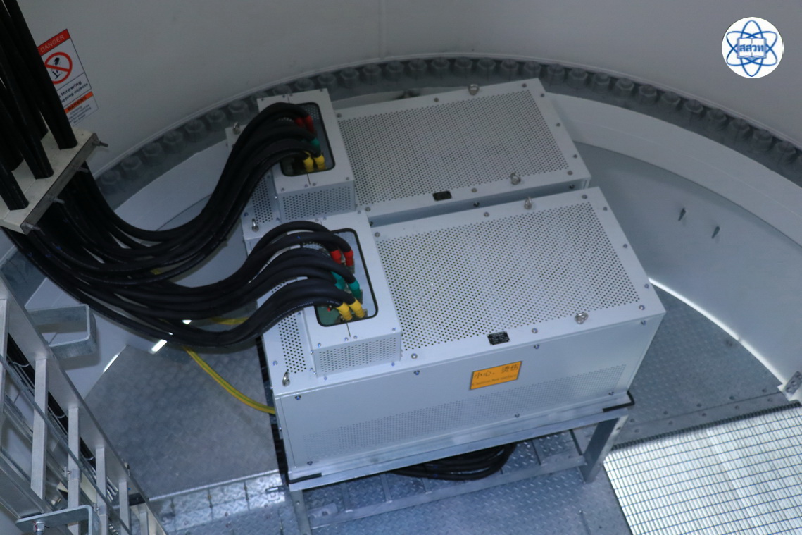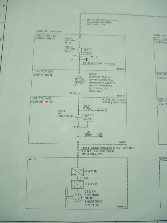 เพลาจากโรเตอร์ ต่อกับเครื่องกำเนิดไฟฟ้าโดยตรง และหมุนด้วยความเร็วเท่ากับใบพัด ในกรณีที่จะผลิตไฟฟ้าได้ โรเตอร์ที่ผลิตไฟฟ้า (เป็นรูปวงแหวน) ต้องมีเส้นผ่านศูนย์กลางที่มาก และแม่เหล็กที่ใช้เป็นแม่เหล็กที่ทำจากธาตุนีโอดิเมียม – Nb (แม่เหล็กแรเอิรธ์)