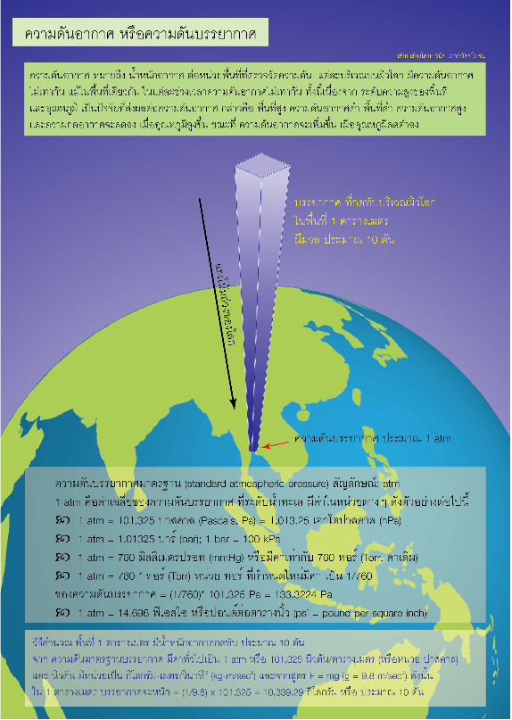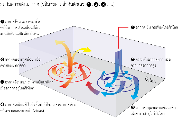 อากาศที่อยู่รอบตัวเรามีน้ำหนัก (ภาพ 2.1) และในแต่ละบริเวณบนผิวโลก หรือบริเวณเดียวกันบนผิวโลก ความดันอากาศมีการแปรเปลี่ยนตลอดเวลา อากาศเคลื่อนที่ (ไหล) จากบริเวณที่มีความกดอากาศมาก (ความกดอากาศสูง) ไปยังบริเวณต่ำ การเคลื่อนที่ของอากาศทำให้เกิด “ลม” (ภาพ 2.2)