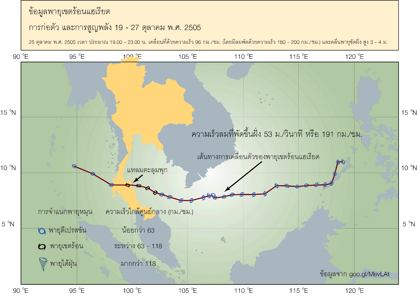 ภาพ 3.4: การเคลื่อนที่ของพายุหมุนแฮเรียต (พ.ศ. 2505)