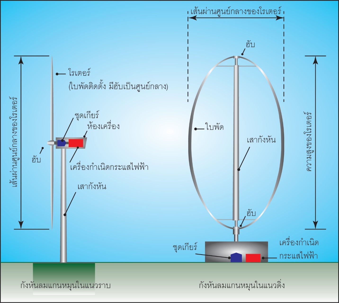 1. ชนิดของกังหันลมเพื่อผลิตไฟฟ้า