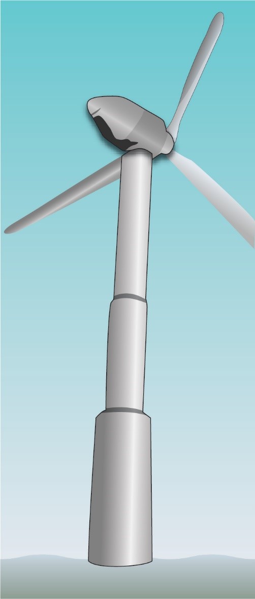 - เสากังหันลม แบบท่อทรงกระบอก ลู่เล็กลงในด้านบน เป็นเสากังหันลมที่พบเห็นได้ทั่วไปในปัจจุบัน (แบบยอดนิยม)