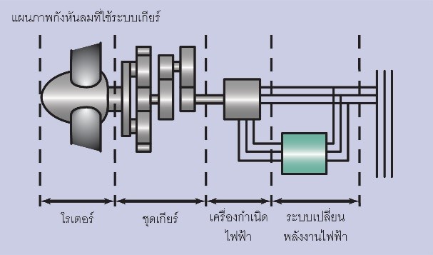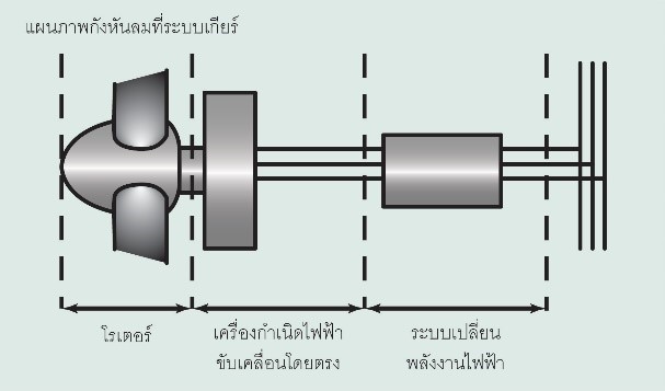 ระบบกังหันลมที่ไม่เปลี่ยนพลังงานโดยตรง ใช้ระบบเกียร์