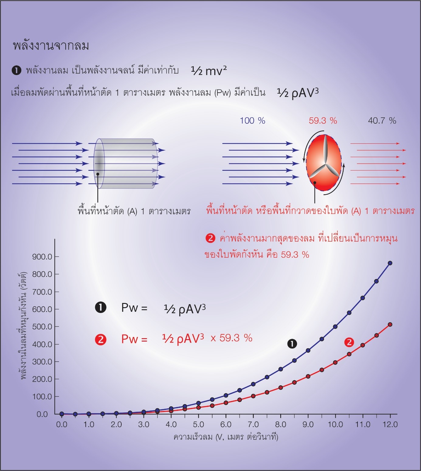 1. พลังงานลม ที่เก็บเกี่ยวโดยกังหันลม (ตามทฤษฎี)